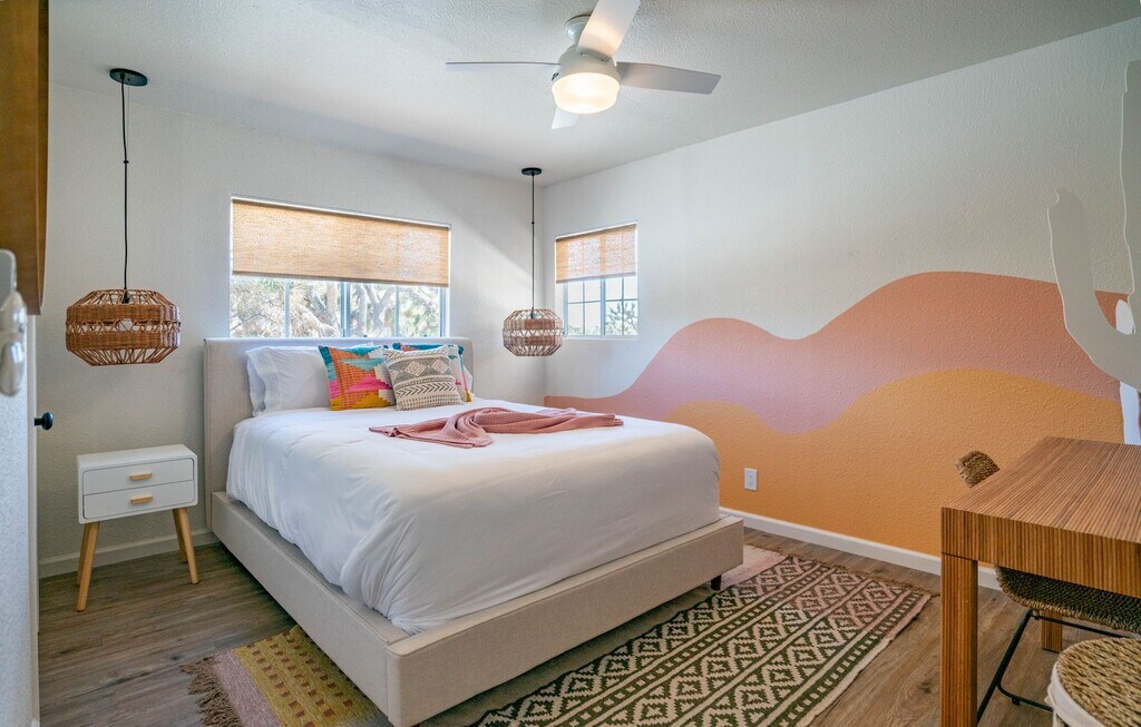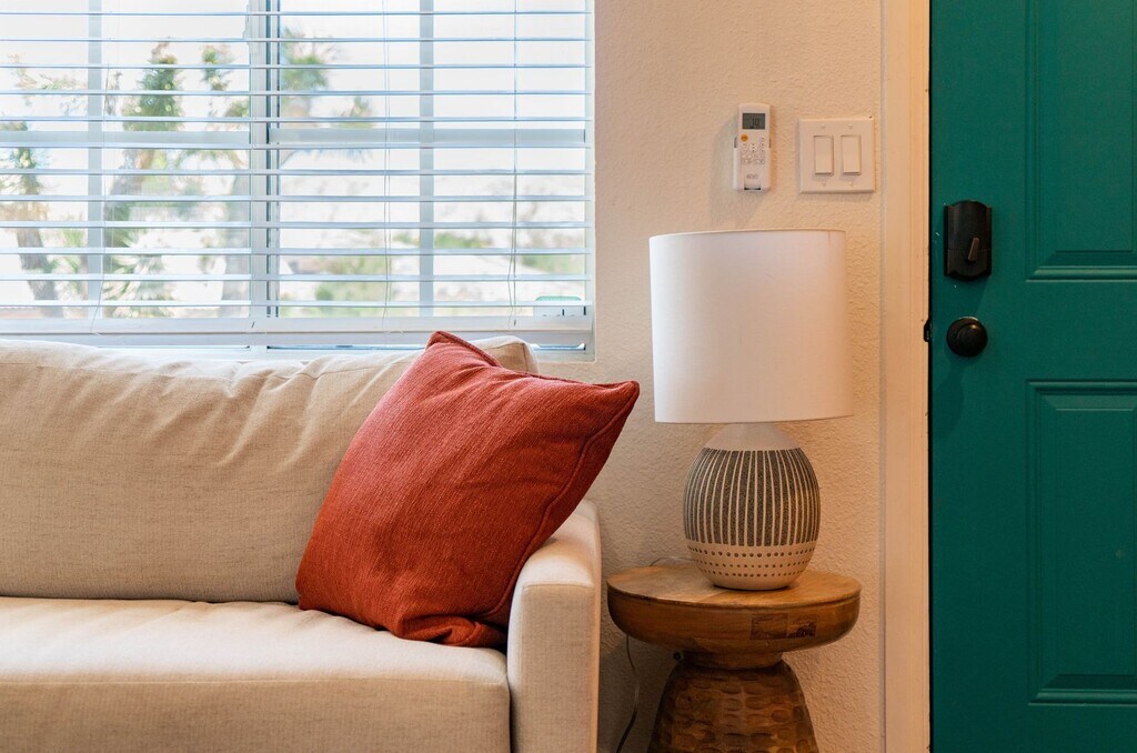 Charming fully furnished 2 bedroom, 1 bath home in Yucca Valley. This cozy property features a well equipped kitchen with refrigerator and microwave, plus a washer and dryer for convenience. Enjoy year round comfort with mini split units in each room and a fireplace for cool desert nights. The fenced backyard includes a covered patio and relaxing hot tub, perfect for outdoor living. Additional amenities include a carport for parking. Move in ready and beautifully maintained!