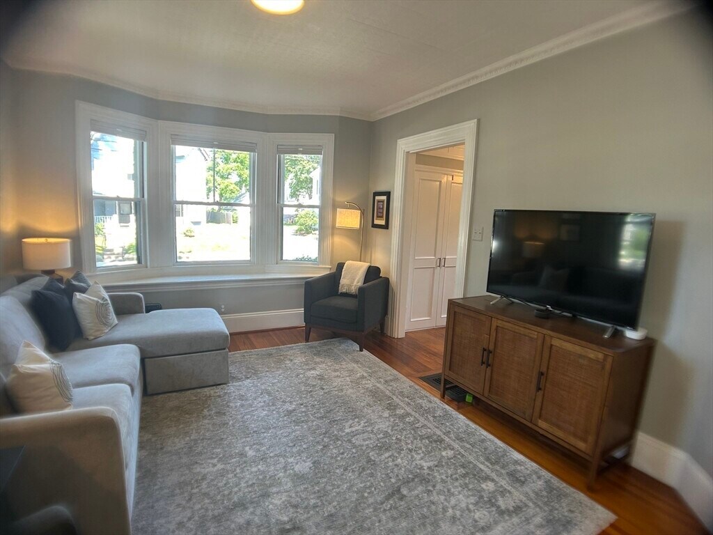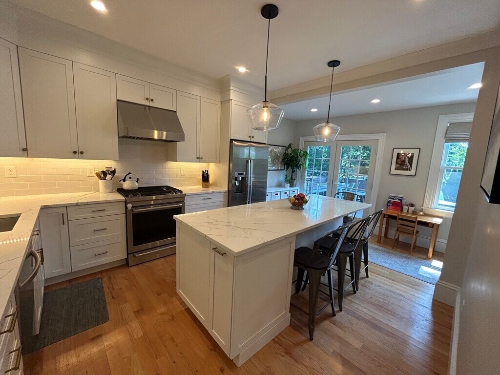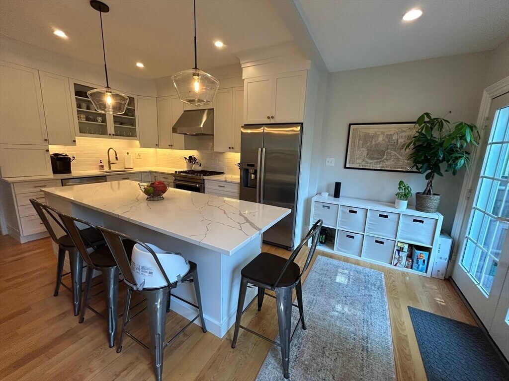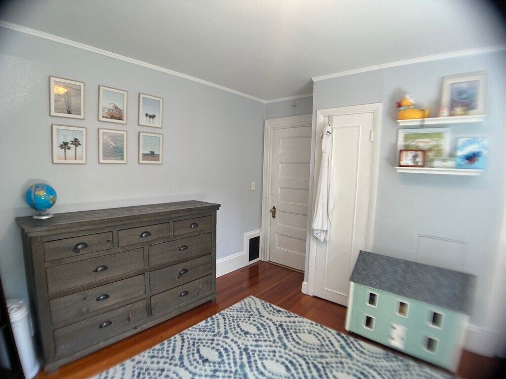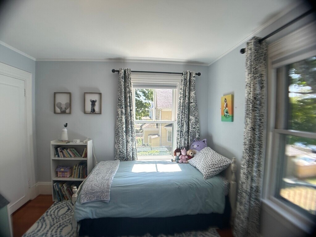 Charming Colonial Victorian located in family-friendly area of Dedham’s desirable Precinct 1. A spacious foyer with ample closets leads to a bright,sun-filled kitchen with quartz counters,center island with built-in microwave,stainless appliances and subway tile. French doors open to a deck overlooking fenced-in rear yard with new,secured gates on either side. Yard well maintained and supported by irrigation system. An updated powder room,decorative fireplaced dining room with built-in dry bar and living/family room complete the first floor. Second level offers three bedrooms,one with "Elfa" closet systems,recently renovated full bath,and spacious home office/playroom. Third level boasts a bedroom with ensuite walk in shower and spacious closets. Central Air and custom window treatments. A short walk to Dedham's vibrant downtown. Easy access to 95,128,and commuter rail to Boston. MLS# 73414277