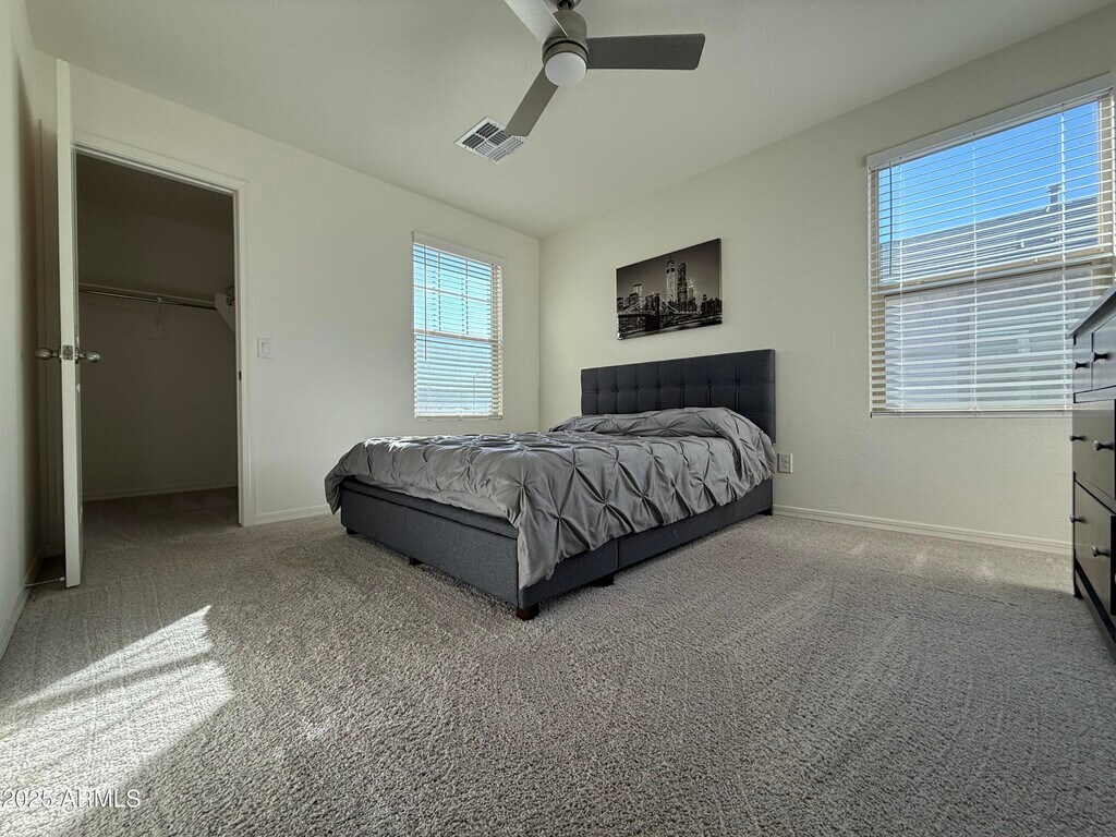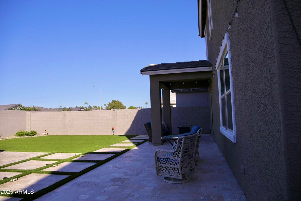 ALSO FOR SALE: MLS # 6924517 Built in 2024,this stunning two-story home showcases an open kitchen that seamlessly connects to the family room and opens to a covered patio,perfect for indoor-outdoor living. The backyard is fully fenced with durable block walls and features low-maintenance artificial turf and pavers. Inside,enjoy a first-floor bedroom,a generous loft,walk-in closets in four bedrooms,and a convenient laundry room on the second floor. The home also includes dual-zone A/C,a programmable thermostat,and a two-car garage for added comfort and functionality. thermostat. A two-car garage completes this impressive home. Home will be partially furnished: it will include the existing living room furniture,kitchen table,a patio set,and one queen bed.