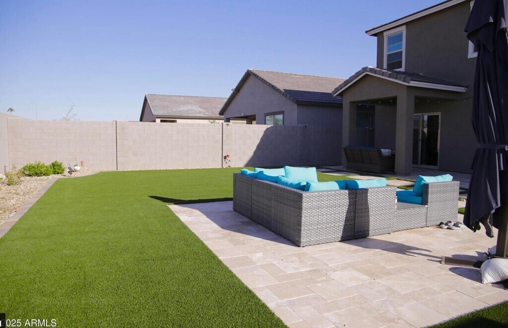 ALSO FOR SALE: MLS # 6995974.QUICK MOVE-IN! Built in 2024,this stunning two-story home showcases an open kitchen that seamlessly connects to the family room and opens to a covered patio,perfect for indoor-outdoor living. The backyard is fully fenced with durable block walls and features low-maintenance artificial turf and pavers. Inside,enjoy a first-floor bedroom,a generous loft,walk-in closets in four bedrooms,and a convenient laundry room on the second floor. The home also includes dual-zone A/C,a programmable thermostat,and a two-car garage for added comfort and functionality. thermostat. A two-car garage completes this impressive home.