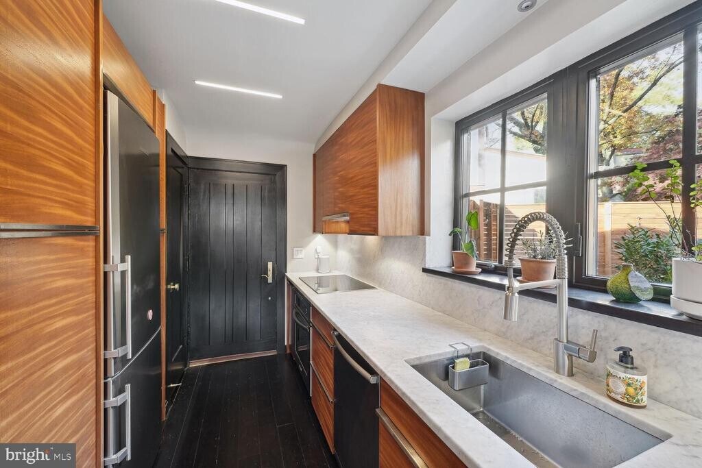 Nestled in the sought-after neighborhood of Chevy Chase, DC, 5543 29th St NW is a rental home that redefines elegance and comfort. Recently transformed by an ultra high-end designer renovation, this stunning 3-level property seamlessly blends modern luxury with timeless architectural charm. Step inside to discover 15-foot vaulted and beamed ceilings, deep moldings, and a grand living room anchored by a cozy fireplace and a stunning wall of built-in bookshelves. The main level also features a versatile office/bedroom with its own private entrance and a view of the beautifully landscaped front yard. The open-concept kitchen flows effortlessly into a dedicated dining area, where double doors invite you to a serene, fenced outdoor garden and patio—your own private oasis in the heart of the city. Upstairs, you’ll find three generously sized bedrooms and a spa-like full bathroom, complete with a separate soaking tub for ultimate relaxation. The finished lower level offers added living space, perfect for a media room, playroom, or guest retreat. This home’s location is as exceptional as its interiors. Just minutes from Lafayette Elementary School and the vibrant community surrounding it, you’ll enjoy the convenience and charm that Chevy Chase is known for. Onsite parking, regular landscaping services, and included water service add even more ease to this rental experience. Available immediately, 5543 29th St NW offers a rare opportunity to enjoy a luxurious and stylish home in one of Washington, DC’s most desirable neighborhoods. Don’t miss your chance to make this your next address!