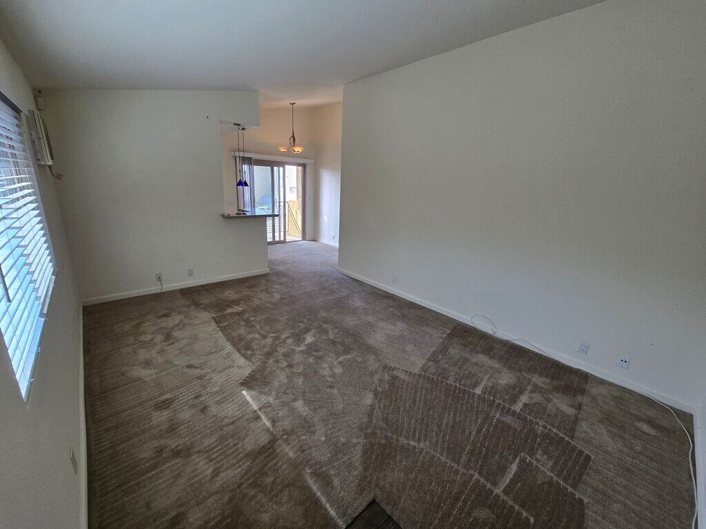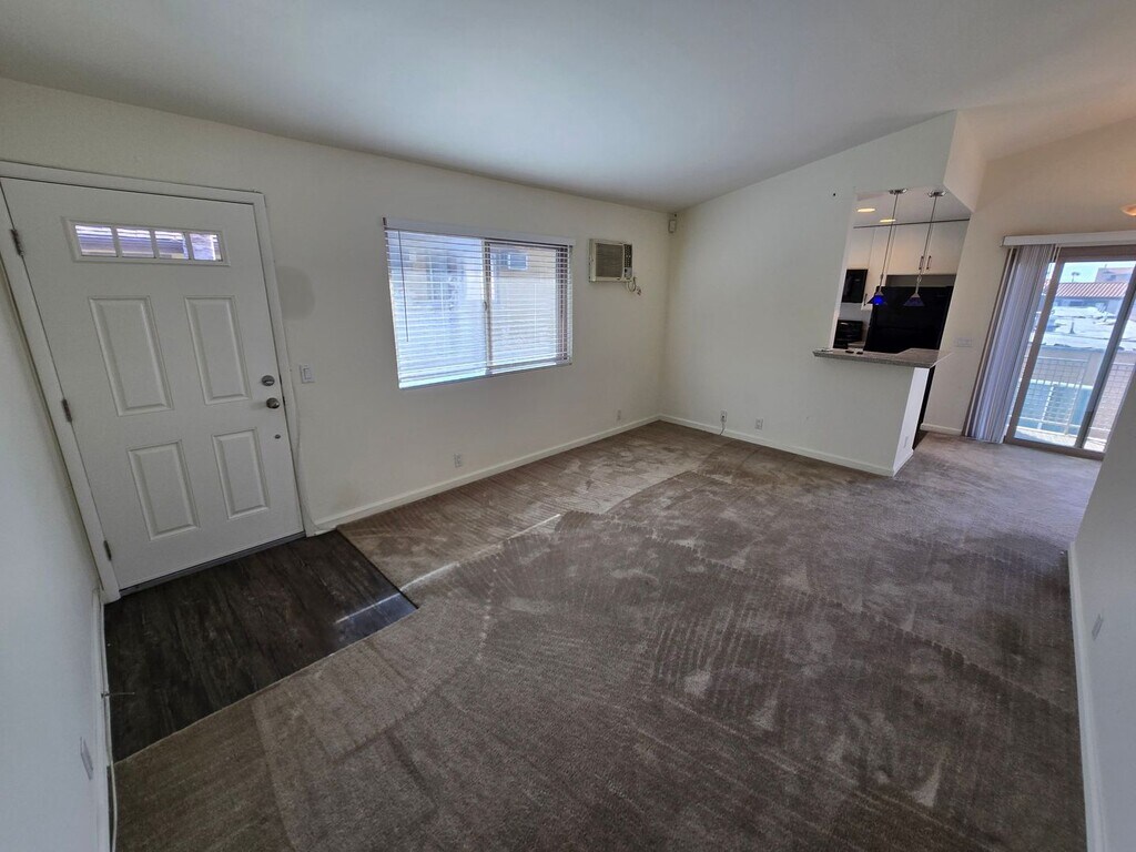 Beautiful upstairs end unit in small complex with a garage! Almost 900 sq. ft. Spacious living room (12x17) with vaulted celings. Freshly painted. Plush carpeting. Plantation style blinds. Wall AC. Modern kitchen with Corian counters. Breakfast bar. Stack washer and dryer included. Refrigerator. Microwave. Smooth-top electric stove. Dishwasher. Custom fixtures. Large master suite with balcony, mirrored wardrobe doors, 2 large wall closets. Vaulted ceilings throughout. Spacious. 1 Car Garage No pets allowed. 1-year lease. NO CO-SIGNERS. Call for appointment to see. FREQUENTLY ASKED QUESTIONS: *What is the Application Fee? $35/adult (18 yrs. and older) May pay online. *Can we apply on-line? Yes. Click the property and follow the prompts. *What do I need to submit with my application? The application itself, the application fee, and proof of income. This is typically 2 recent pay stubs or, if self-employed, 3 months recent personal bank statements. *How important is good credit? VERY important. *How long does it take to get an answer? Usually 2-3 days. If accepted, you will be expected to sign the lease and pay your security deposit online within 24 hours of being approved. Rent must begin within 2 weeks maximum from the date you are approved.