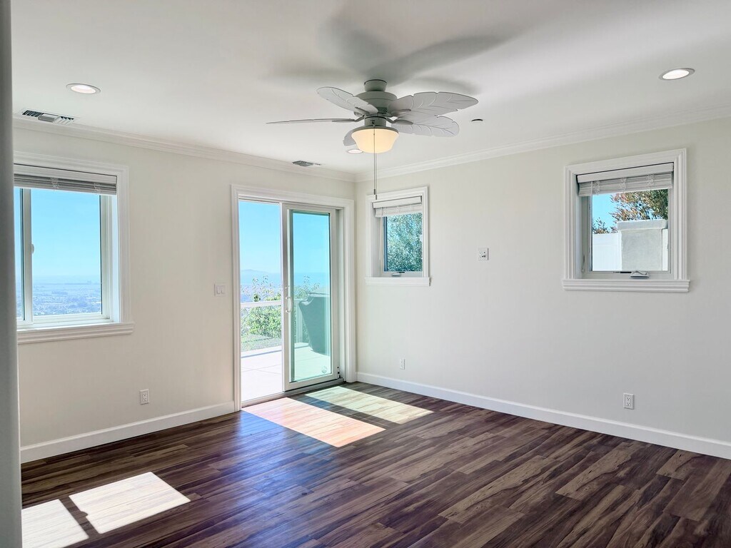 Apply now: Welcome to this stunning single story three-bedroom, two-bath home located in the desirable Skyline Estates located in the hills of Ventura. This property offers a bright, open floor plan that blends style and comfort, featuring expansive windows that capture sweeping views from nearly every room. The inviting living area includes a large gas fireplace and seamlessly connects to a chef’s kitchen equipped with high-end stainless steel appliances, a wine refrigerator, and a spacious pantry. A brand-new washer and dryer are conveniently located in the laundry room, both maintained by the owner. Further inside, you’ll find additional bedrooms and a private office offering inspiring mountain views. The primary suite provides direct access to the expansive covered patio, a large walk-in closet, and a luxurious en suite bathroom with a walk-in shower. The patio spans the entire back of the home, creating an ideal space for entertaining or relaxing while enjoying the tranquil scenery. Ceiling fans throughout ensure excellent airflow and comfort year-round. This property also includes a two-car garage and two additional driveway spaces on a quiet, private street. Utilities and Fees All utilities and gardening services are the tenant’s responsibility. There is no HOA fee. Appliances The home includes an attached microwave, refrigerator (maintained by the owner), washer and dryer (maintained by the owner), gas range, and dishwasher. Amenities Air conditioning, heating, and a gas fireplace are provided for year-round comfort. Garage and Parking Two garage spaces and two driveway spaces are available. Pet Policy Dogs and cats are welcome with an additional deposit of $500 per pet. No size limit applies. This exceptional home combines comfort, privacy, and panoramic views in one of Ventura’s most sought-after neighborhoods.