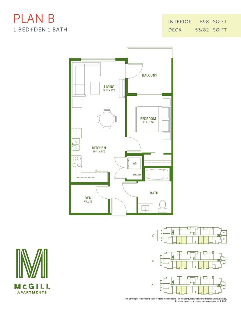 Bright One-Bedroom + Den Apartment – McGill Building, Sardis Enjoy comfort and convenience in this beautiful 1-Bedroom + Den apartment located in the desirable McGill building, Sardis. This unit combines modern design with functional living, making it a great choice for anyone looking for extra space. Highlights: Large bedroom with generous closet space Versatile den, perfect for a small guest room, study, or nursery Contemporary kitchen with stainless steel appliances and breakfast bar Spacious living room with access to a private balcony In-suite washer & dryer Secure, well-maintained building with underground parking and storage included The McGill building offers an unbeatable location, just minutes from shopping, restaurants, parks, and public transit, with quick access to Vedder Road and the highway. Sorry, no pets, no smoking and no barbecues!