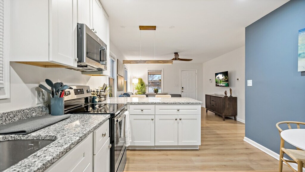 Feel at home in this cozy Capitol Heights retreat! This spacious home features 3 bedrooms and 2 full bathrooms. The fully equipped kitchen features stainless steel appliances, cookware, dishware, and utensils, as well as a coffee maker, toaster, microwave, and dishwasher. The fenced backyard is perfect for relaxing outdoors. Driveway parking is available for one vehicle. Pets are welcome, and pet fees apply, so please contact us in advance. Conveniently located just steps from the Metro, this home provides quick access to D.C.'s attractions. The basement is rented separately with a completely private entrance and no shared spaces. Quiet hours are from 10 PM to 7 AM. No smoking is allowed inside the home. Registration Number: HOU-0052-2022-STR-H [SI]