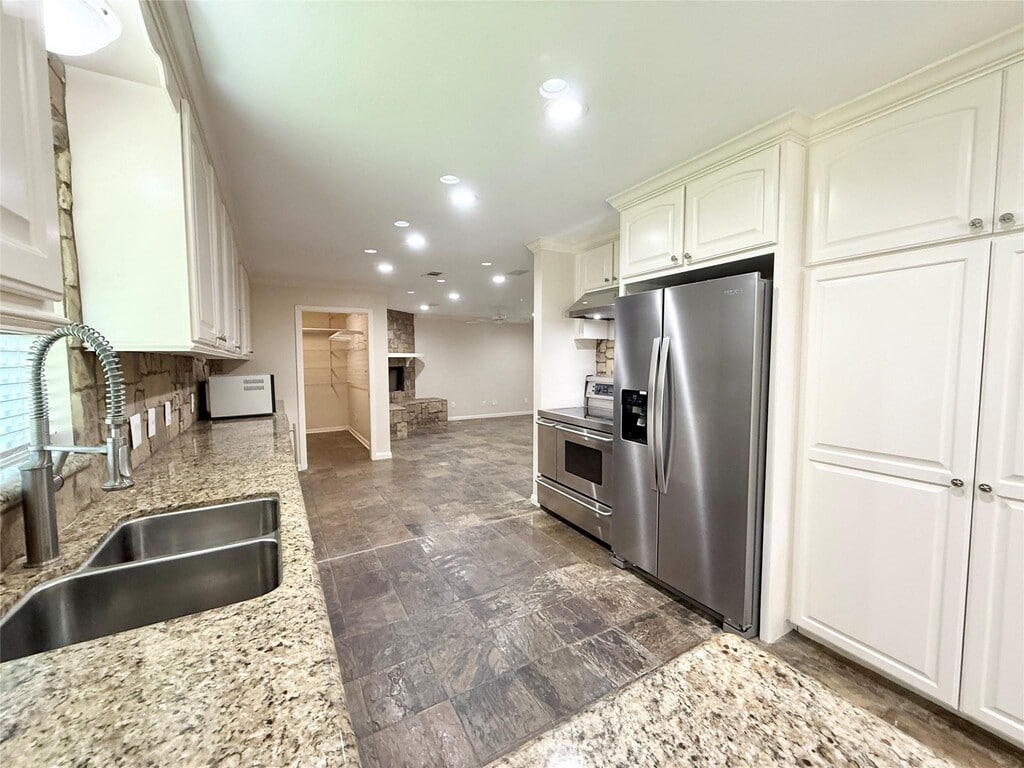 Beautiful 3/2 Home near The Galleria,recent paint,beautifully restored hardwoods w/ slate tile floors,spacious formal living room w/ built ins,recessed lighting throughout,mock fireplace,beverage fridge,2 fridges included,washer/dryer included,large shower in primary suite,granite countertops,2” blinds,stainless steel appliances,storage building in back yard,2 car carport,end of street lot,a must see!!! MLS# 14857132