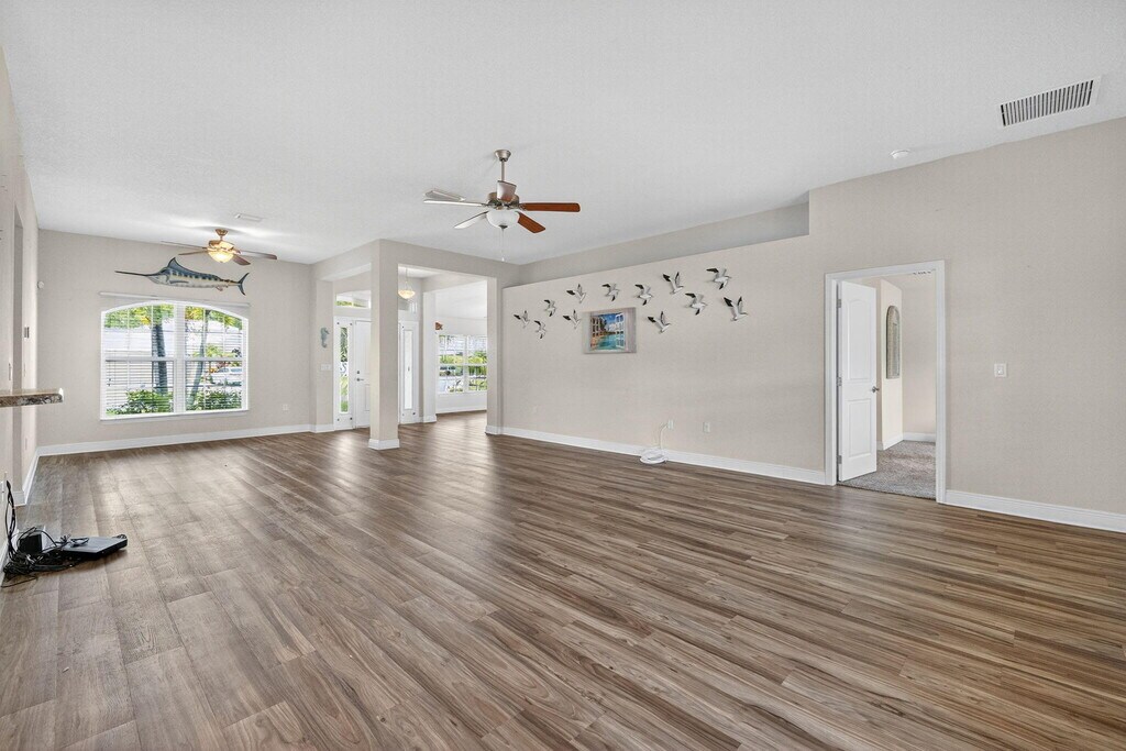 Spacious and thoughtfully designed,this 4-bedroom,3-bathroom home offers over 2,328 square feet of living space under air. Set on a generous corner lot,the property delivers the perfect balance of comfort,functionality,and convenience. A desirable split-bedroom floor plan provides privacy and flexibility,while multiple living areasincluding a formal living room,family room,dining area,and a casual eat-in space off the kitchencreate a versatile layout ideal for both entertaining and everyday living. The screened-in patio opens to a fully fenced backyard,offering both privacy and peace of mindperfect for pets,play,or simply enjoying your own outdoor retreat. The yard is enhanced by mature tropical landscaping,including banana trees and a coconut palm,creating a relaxed South Florida feel. A well-fed irrigation system helps keep the lawn lush while keeping costs down. Additional highlights include city water and sewer,an extended driveway with ample parking,and convenient side access to the backyardideal for boats,trailers,or extra storage. MLS ID B26012497