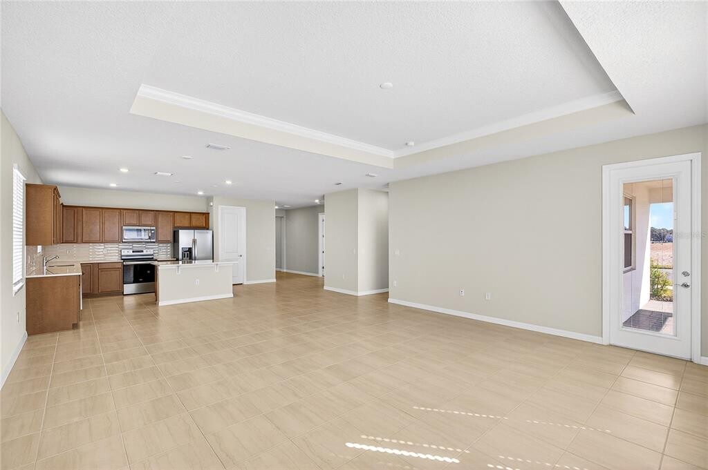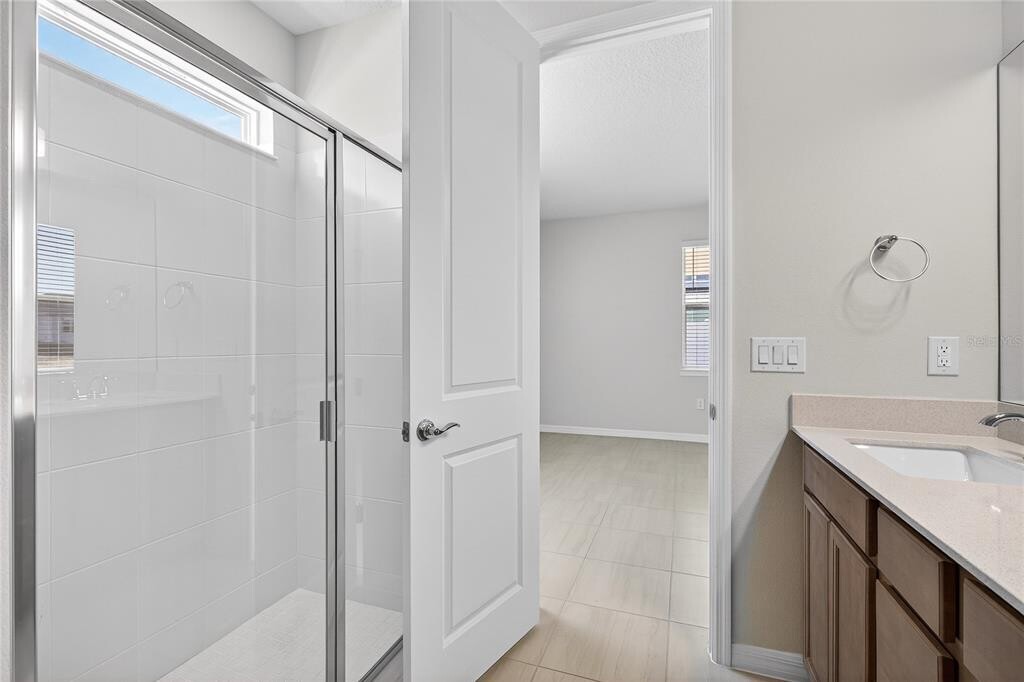 This beautifully designed one story modern home is located in the highly sought after Bridgewalk community in St. Cloud. With soaring ceilings and tall interior doors throughout,the home feels bright,open,and spacious from the moment you walk in. The open concept layout with 3 Bedrooms,2 Bathrooms and a dedicated Office which could be a 4th bedroom is perfect for both everyday living and entertaining,featuring a stylish kitchen with quartz countertops,ceramic tile backsplash,upgraded cabinetry,stainless steel appliances,a large center island,and included washer and dryer. Tile flooring runs throughout the entire home,and energy efficient AC technology helps keep utility costs down. A covered rear porch offers a great space to relax or unwind after a long day. Bridgewalk is a boating focused master planned community just south of Lake Nona and less than 10 minutes from Medical City. Residents enjoy resort style amenities including a pool and spa,fitness center,volleyball and basketball courts,tennis and pickleball courts,playground,dog park,clubhouse,scenic walking and jogging trails,and a private boat ramp with dock and gazebo on Springhead Pond. The community also offers boat and jet ski slips and access to Lake Ajay. Conveniently located near Lake Nona Town Center,Boxi Park,USTA National Campus,UCF,Valencia College,KPMG,Orlando International Airport,and major highways 417 and 528,this home offers both comfort and connectivity. Zoned for highly rated A schools. MLS# O6381464