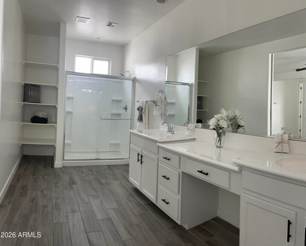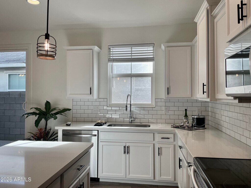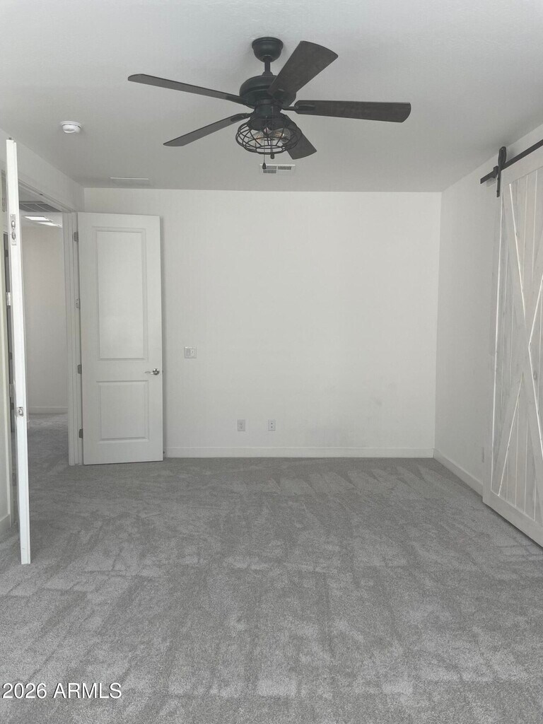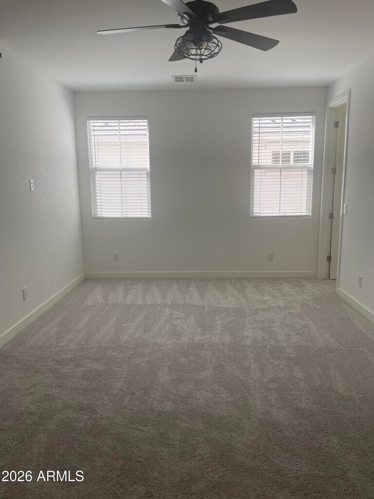 Move-in ready with brand new carpet installed February 2026! A bright,warm and spacious atmosphere flows throughout this lovely modern home. This spacious four bedroom residence offers two primary suites - one upstairs and one downstairs - while the other two bedrooms are upstairs and are generously sized.Each primary suite features sliding barn doors opening to a private ensuite bath. Walk-in closets in all bedrooms with most walk-in closets featuring windows providing an abundance of beautiful natural light. An open great room pairs beautifully with the upgraded white kitchen cabinetry,quartz counter,center kitchen island & stainless appliances. Wood looking ceramic tile downstairs and NEW carpet in all bedrooms,upstairs hallway and stairway. The two car garage features an epoxy floor,shelving and direct entry to home. The backyard is complete with ground pavers and turf grass for low-maintenance living. Resort-style Cadence Community amenities are in abundance featuring a large community pool with water slides,a lap pool & hot tub,parks,playgrounds,sports courts,fitness center,community center,game room,STIR community social functions,and an event center. Close to Highways 24,60,202,and only minutes away from numerous shopping destinations and dining choices.