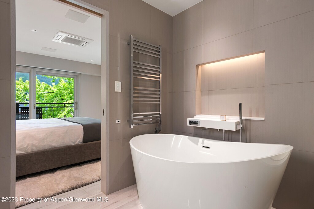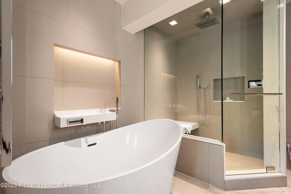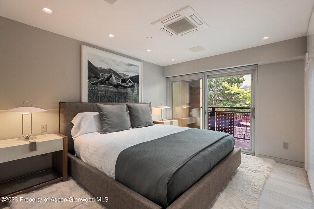 This stunning contemporary remodeled 3-bedroom,2-bathroom condominium is the ideal rental for all seasons. The convenient Gondola Plaza location offers rare ski in/out access in the heart of downtown Aspen. It is steps away from all that Aspen has to offer including shopping,restaurants,and any activity one could think of! Floor to ceiling sliding glass doors invite the views of town and Red Mountain while relaxing on the deck or enjoying the bright,chic kitchen and living room. The oversized kitchen island with bar seating features gorgeous back lit onyx that provides a brilliant yet warm feeling. Subzero,Wolf,and Blue Star appliances round out the state-of-the-art chef's kitchen. This property is truly exemplary and ideal for your next visit to Aspen!