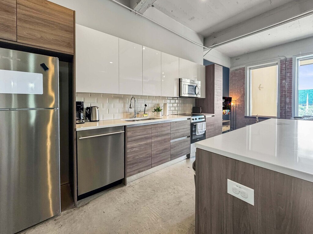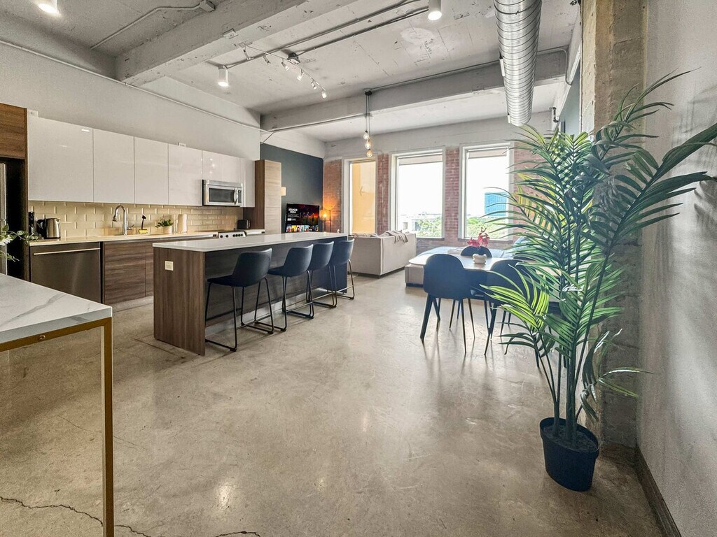 Discover the perfect spot to base your Dallas adventure in this chic 1-bedroom, 1-bath urban retreat. Relax in comfort while taking in stunning Downtown skyline views. Located in the heart of the city, you’re close to top dining, cultural attractions, business centers, and parks. Ideal for both business and leisure travelers, this home offers a distinctive and memorable experience, far beyond the usual hotel or standard rental. Relax in this modern yet cozy space designed for comfort and convenience, offering a stress-free stay in the vibrant heart of the city. The bedroom is ideal for children or extra guests, featuring two full-size bunk beds with premium foam mattresses, soft pillows, and crisp linens. Enjoy a bright, sunlit room with large windows, warm hardwood floors, and a generous walk-in closet. The stylish living room is perfect for lounging and unwinding, equipped with a king-size bed, sofa bed for additional guests, a 58” 4K HDR Smart TV, a modern coffee table, an ergonomic workspace, and an open layout with contemporary LED lighting. The fully stocked kitchen and dining area include an oven with stovetop, full-size refrigerator and freezer, microwave, dishwasher, coffee maker with starter supplies, electric kettle, and dual-basin sink with hot and cold water. The bathroom is fresh, spotless, and equipped with essentials for your convenience. Oversized vehicles are not permitted in the parking garage and will be denied entry at check-in, in accordance with building regulations. Vehicles that are not allowed include those with breathalyzer systems, unsafe or improvised controls, or faulty brakes, oversized vehicles such as sprinter vans, extended vans, vans accommodating 10+ passengers, or any vehicle taller than 6’8”, dually trucks or service vehicles with wide tires, lockers, or external storage that make maneuvering in the garage difficult, vehicles with aftermarket lift kits or large custom rims and tires, and motorcycles or tricycles without standard car-like controls. Pets may be allowed based on size, but prior approval is required to prevent booking issues. A cleaning fee per pet applies: $25/night for stays of 1–4 nights, $200 per pet for stays of 5–29 nights, and $300 per pet for stays of 30+ nights. The property is not responsible for maintenance or repairs related to the building during your stay. Guest verification is required before arrival to meet legal and safety requirements. All guests may need to provide a government-issued photo ID, verify contact information, complete a secure online verification process, and undergo a background check if requested. This information is used solely for verification purposes and will never be shared beyond that scope. All guests must sign a rental agreement outlining the terms of stay. By booking, you agree to follow all rental policies, submit a valid photo ID before check-in, complete a background check if requested, and finish the verification process to receive check-in instructions. Verification information must be submitted within 24 hours of booking or within 1 hour for same-day bookings. Failure to complete verification may result in cancellation. For your safety, hallway cameras are in operation, and a Minut noise monitoring device is installed in the unit. [SI]
