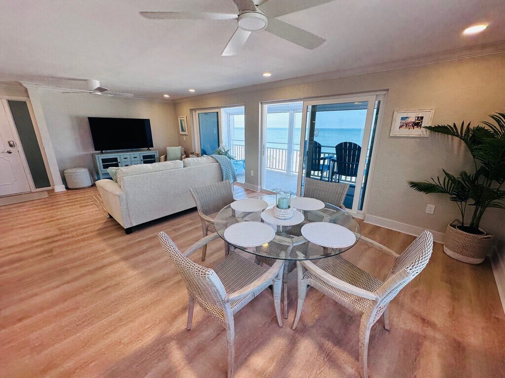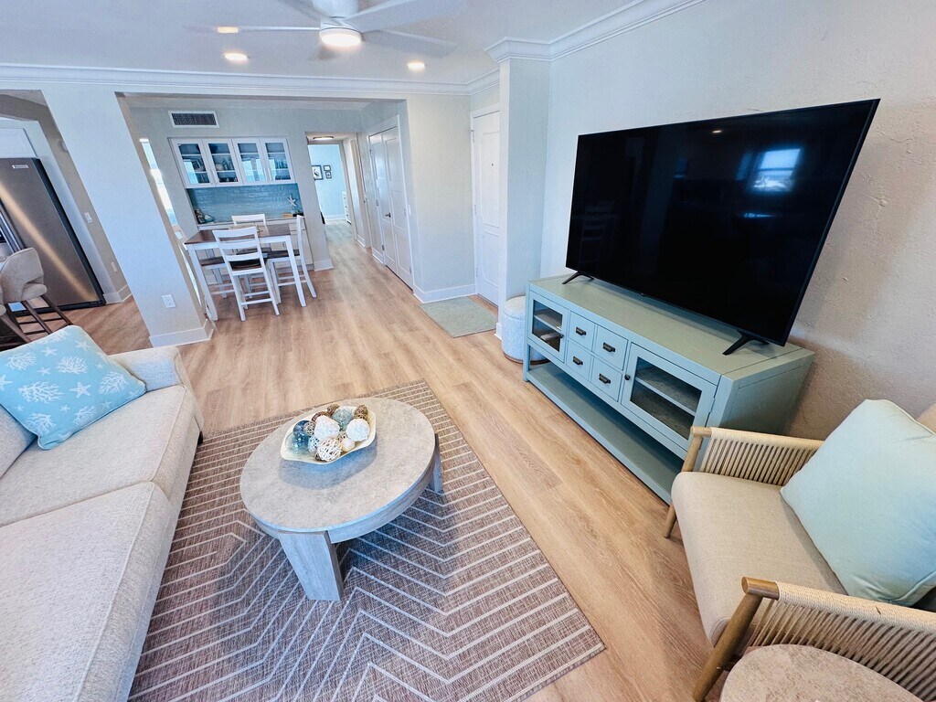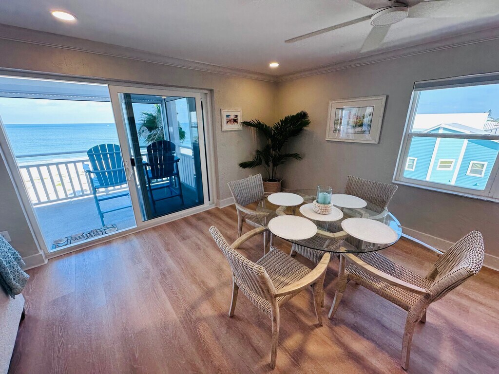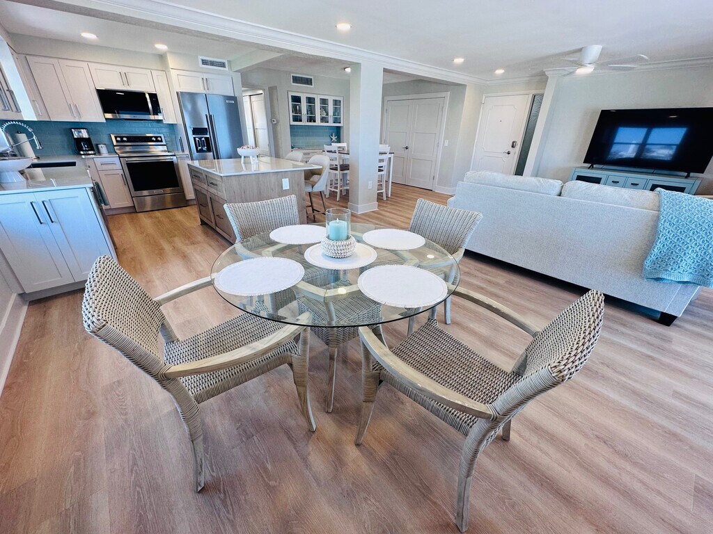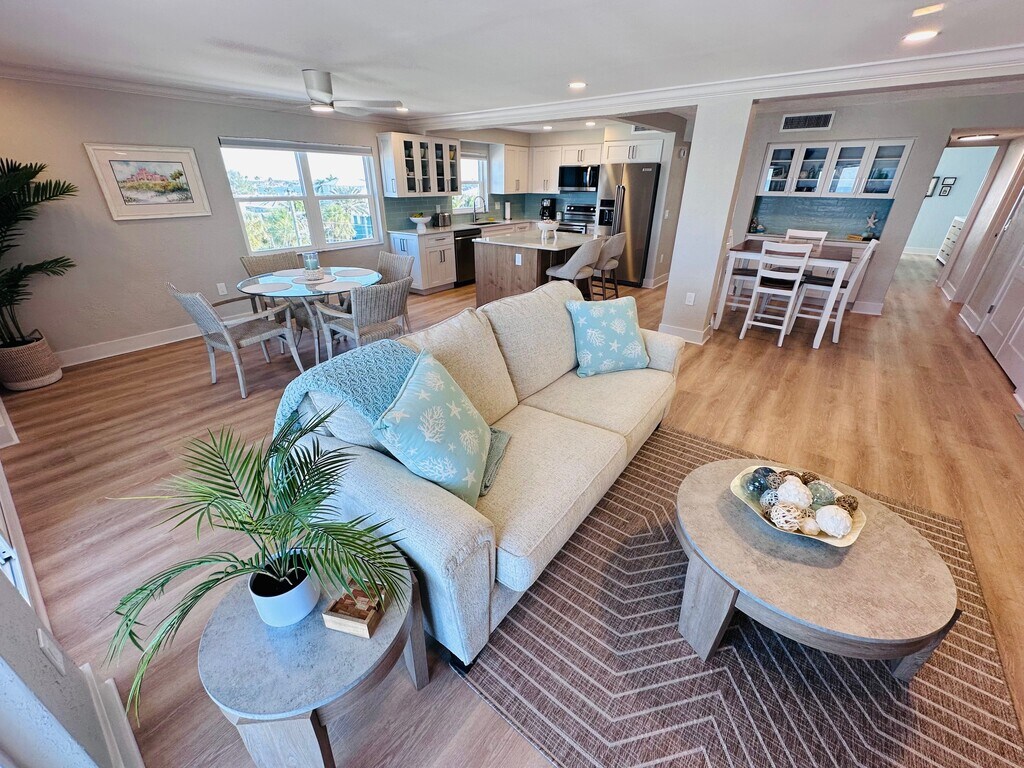 Welcome to your sea-to-sea sanctuary in the heart of Pass-a-Grille!!! This beautifully remodeled 2-bedroom, 2-bath residence is perched on the 5th floor of 555 Gulf Way, directly across from the sugar-sand shoreline. The home offers rare, wide-open views stretching across Pass-a-Grille Beach, St. Pete Beach, Treasure Island, and Egmont Key. Sunsets are your nightly backdrop, the breeze off the Gulf fills the rooms, and the easy, relaxed rhythm of island living begins the moment you arrive. Inside, the unit is bright, spacious, and thoughtfully updated throughout. The open living and dining area frames the Gulf and horizon, creating a stunning view from morning to night. A large flat-screen TV is perfect for unwinding after a day on the beach. The fully remodeled kitchen features sleek stainless steel appliances, generous counter space, and all essentials for long stays. A large washer and dryer are located inside the unit for convenience. This 2-bedroom, 2-bath layout sleeps a maximum of 4 guests with a king bed in the primary suite and a queen bed in the guest room. Both bedrooms overlook the Intracoastal Waterway, giving you true sea-to-sea visibility sunrise to sunset. Both bathrooms are fully renovated with modern finishes and walk-in showers that create a calm, spa-inspired atmosphere. Step out onto the private balcony to take in 170-degree panoramic Gulf views. Watch sailboats drift by in the afternoon, enjoy coffee in the morning light, or relax at sunset as the sky turns cotton candy pink. Adirondack loungers, high-top seating, and side tables make this balcony a true extension of the living space. Beach chairs and gear are provided. Reserved parking and guest parking are available. The elevator opens directly to your front door, and two stairwells on the east and west sides offer quick access to the beach or village. Wi-Fi and cable are included, along with all utilities. Just two beach blocks north is the historic Pass-a-Grille village district, home to waterfront restaurants, rooftop bars, local shops, galleries, and the iconic fishing pier. Charter a boat to Shell Key Preserve, Egmont Key, Fort De Soto, or head into the Gulf for world-class fishing. This is one of the last true Old Florida beach towns, where life moves slower, the water is always sparkling, and the sunsets are unforgettable. Monthly/seasonal rates are as follows: 2026 January $8,000 February $9,000 March $10,000 April $8,000 May $6,000 June $6,000 July $6,000 August $5,000 September $5,000 October Blocked for Owner Use November Blocked for Owner Use December $7,000 2027 January $9,000 February $10,000 March $10,000 April $9,000 May $6,000 June $6,000 July $6,000 August $5,000 September $5,000 October Blocked for Owner Use November Blocked for Owner Use December $7,000 Additional Info: All Utilities Included Cleaning Fee $200 Damage Waiver $99 Sleeps 4 Maximum 30 Day Minimum Stay Required