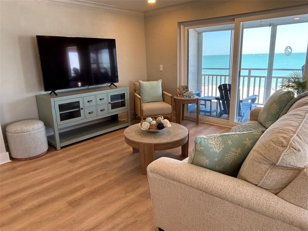 Beautifully remodeled Beachfront Condominium. 5th Floor view of the entire beach. Great attention to detail with an open floor plan,solid surface counters,wood floors,laminate flooring,laundry center in the unit,assigned parking. June-Aug $5000mo,Sept $6000,Dec $6500,JAN - FEB $8500MO AND ARE NOW AVAILABLE. MLS# TB8364756