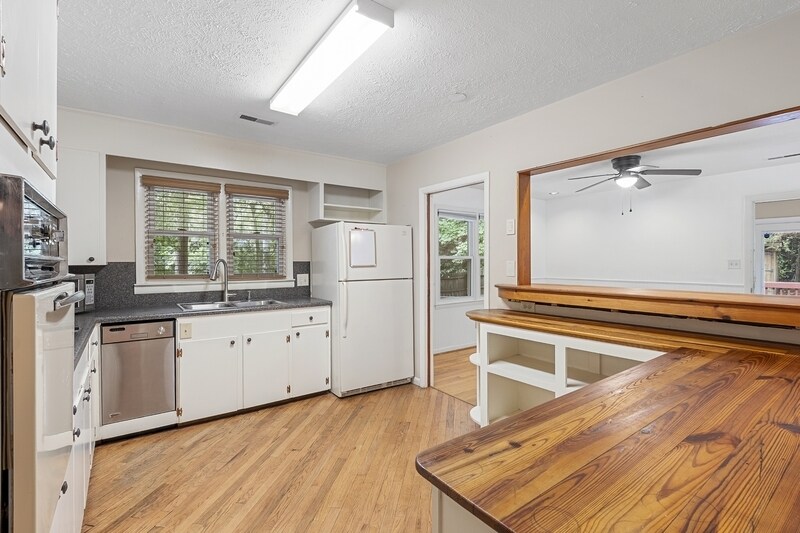 Charming main level unit available in this classic Downtown Southern Pines brick ranch duplex! This 3-bedroom, 2-bath home features original hardwood floors, an open floor plan, and a welcoming living room with a stunning fireplace and wood-burning stove. Enjoy the bright sunroom, a spacious fenced backyard reserved exclusively for this unit, a deck, and a convenient storage shed. The close proximity to Downtown Southern Pines rounds out this home, making it your ideal rental. Washer and Dryer provided . Lawn care, water, and sewer are included in rent. Please note- the bottom unit is currently vacant. The unit will be listed for rent in the future.