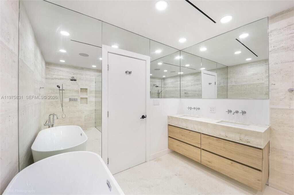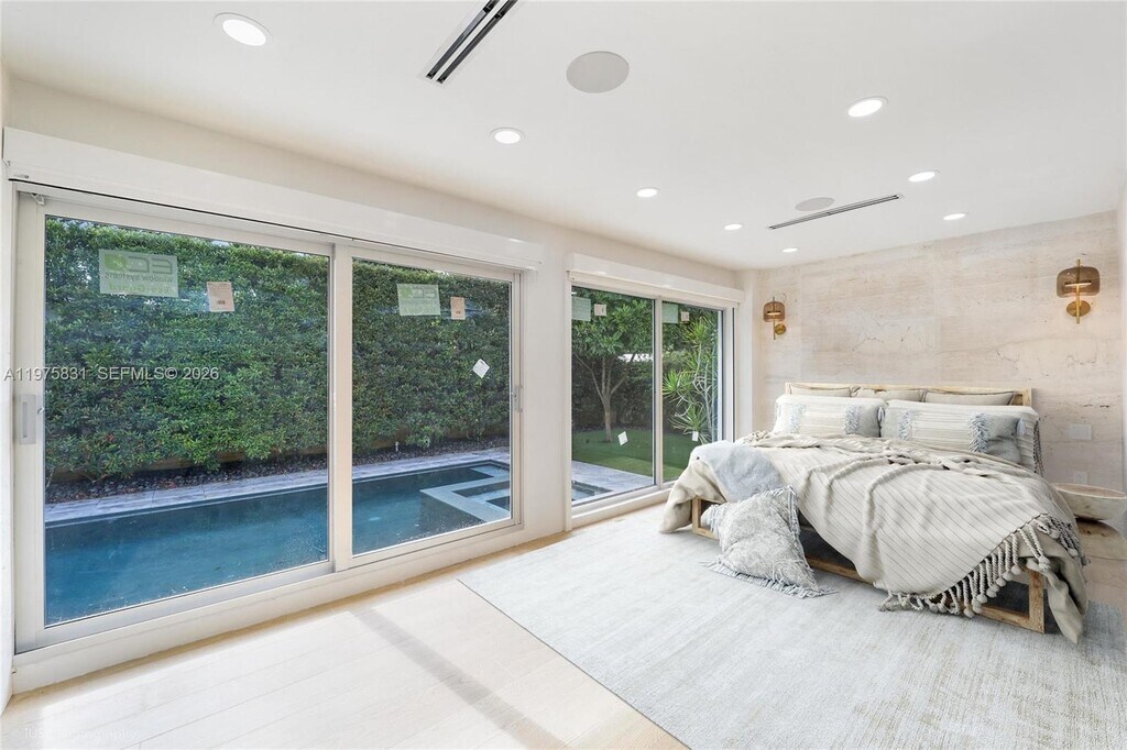 Stunning 4-bed, 3-bath home located in guard-gated Morningside. Remodeled in 2024, this 2,586 sqf home boasts a modern design with high-end finishes throughout. Open concept layout featuring a gourmet kitchen with Sub-Zero/Miele appliances and a quartzite island, laundry room, built-in cabinetry, electric blinds, 2 A/C units, metal roof and a beautiful backyard. Master suite offers floor-to-ceiling windows overlooking the pool, custom-built walk-in closet and travertine en-suite bath. Large-sized bedrooms filled with natural light and custom cabinetry. Beautifully landscaped backyard combines a zen garden, a 40 ft marble pool, spa, Sonos speakers, security cameras, pool heater and 4-car parking in driveway in a fully-fenced lot. Available 4/15, very easy to show MLS # A11975831
