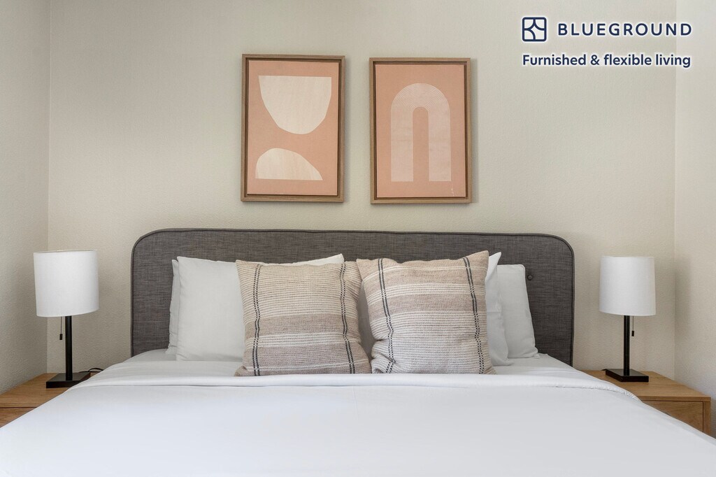 Show up and start living from day one in Mountain View with this cozy two bedroom Blueground apartment. You’ll love coming home to this thoughtfully furnished, beautifully designed, and fully equipped Mountain View home. (ID #SFO1429) The advertised rate of $5,620/month is the lowest available price, based on a 12 month(s) stay with a move-in date of July 1, 2026. Rates vary depending on the duration of stay, season, and other parameters. For exact pricing and additional pricing components, please visit our website and enter your desired move-in and move-out dates. The rate is applicable when billed upfront; it can be higher if billed in multiple payments. Brokers are welcome to reach out. Were you looking for an unfurnished lease? Try Blueground instead and upgrade from unfurnished to furnished living: - Furnished at rates comparable to unfurnished - No setup or furniture costs - save thousands - Move-in ready - save time, just bring your suitcase Designed with you in mind As with any Blueground apartment, you’ll find a thoughtfully designed space complete with beautiful furniture and a fully equipped kitchen in this two bedroom property. And, thanks to our superior quality mattresses, luxury linens, and towels, you can relax knowing you’ll always feel comfortably at home. When you’re ready for some fun, you can take in the Mountain View vibes or bring the entertainment to you with the premium wireless speaker or smart TV. This apartment also offers in-apartment laundry. Sleeping arrangements King Bed, 70.8in/180cm King Bed, 70.8in/180cm Amenities Building amenities unique to this two bedroom apartment include an on-site: - BBQ Area - Dryer - Elevator - Game room - Swimming pool - Washing machine - Lounge - Parking - Pets allowed - Playground Arrival and ongoing support The entire apartment is yours to enjoy! Throughout your stay, you’ll have access to our Client Experience team through the Blueground App. You can schedule additional cleanings, submit maintenance requests, and view our neighborhood recommendations with just a few taps. We’ll share all details upon confirmation of your stay. Ideally Located This furnished home is located in Mountain View, in Santa Clara County. It is named for the unbeatable views of the Santa Cruz Mountains. Situated in the southern end of the San Francisco Bay Area, residents enjoy the many parks, specifically Shoreline Park, which is the largest in Mountain View and includes an amphitheater and golf course. Go for a walk or run on the San Francisco Bay Trail. In addition, Stevens Creek goes through Mountain View and empties in Shoreline. A paved path for pedestrians and bikes runs alongside the creek, which is ideal for nature lovers. The nearby cities of Palo Alto, Los Altos and Sunnyvale are all easily connected by bus and rail service. Other things to note Building amenities may have an extra cost. This Blueground apartment has flexible lease options, allowing you to book it for one month, a year, or more. Pets are welcome, though weight limits and breed restrictions apply and may incur fees. Parking is offered based on availability and is subject to a fee. We take great pride in ensuring every photo displayed is shot in our own units with our actual furnishings. That said, we regularly refresh our decor and furniture arrangement, which may differ from what’s pictured. Also note - This apartment's central location means it can be noisy at times - The apartment is in a busy location, so it will be noisy when your windows are open [SI]