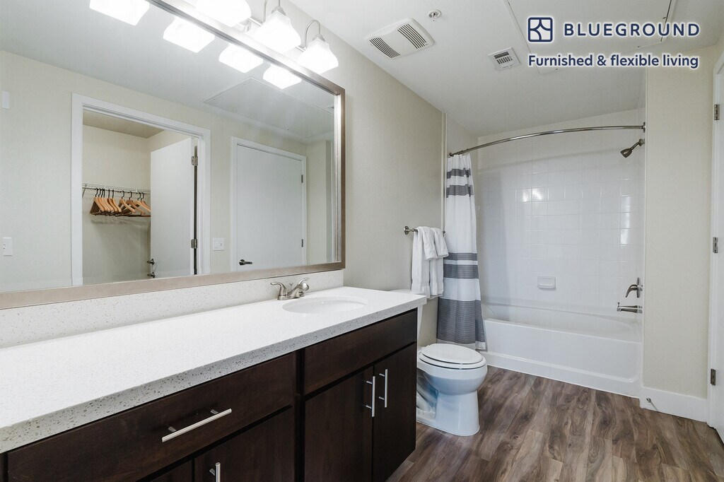 Feel at home wherever you choose to live with Blueground. You’ll love this charming Mountain View furnished one bedroom apartment with its modern decor, fully equipped kitchen, and lovely living room. Ideally located, you’re close to all the best that Mountain View has to offer! (ID #SFO1761) The advertised rate of $4,000/month is the lowest available price, based on a 12 month(s) stay with a move-in date of March 14, 2026. Rates vary depending on the duration of stay, season, and other parameters. For exact pricing and additional pricing components, please visit our website and enter your desired move-in and move-out dates. The rate is applicable when billed upfront; it can be higher if billed in multiple payments. Brokers are welcome to reach out. Were you looking for an unfurnished lease? Try Blueground instead and upgrade from unfurnished to furnished living: - Furnished at rates comparable to unfurnished - No setup or furniture costs - save thousands - Move-in ready - save time, just bring your suitcase Designed with you in mind Gorgeous furniture, fully equipped kitchen, smart TV, and a premium wireless speaker are just a few of the amenities you’ll find inside this one bedroom apartment. Ideally located in Mountain View, you’ll find a lot to love outside as well. When you’re ready to relax, you’ll be happy to discover every Blueground bedroom comes with superior quality mattresses, luxury linens, and cozy towels. We handle everything so you can simply show up and start living. This apartment also offers in-apartment laundry. Sleeping arrangements Queen Bed, 63in/160cm Amenities Building amenities unique to this one bedroom apartment include an on-site: - BBQ Area - Dryer - Elevator - Game room - Swimming pool - Washing machine - Lounge - Parking - Pets allowed - Playground Arrival and ongoing support The entire apartment is yours to enjoy! Throughout your stay, you’ll have access to our Client Experience team through the Blueground App. You can schedule additional cleanings, submit maintenance requests, and view our neighborhood recommendations with just a few taps. We’ll share all details upon confirmation of your stay. Ideally Located This furnished home is located in Mountain View, in Santa Clara County. It is named for the unbeatable views of the Santa Cruz Mountains. Situated in the southern end of the San Francisco Bay Area, residents enjoy the many parks, specifically Shoreline Park, which is the largest in Mountain View and includes an amphitheater and golf course. Go for a walk or run on the San Francisco Bay Trail. In addition, Stevens Creek goes through Mountain View and empties in Shoreline. A paved path for pedestrians and bikes runs alongside the creek, which is ideal for nature lovers. The nearby cities of Palo Alto, Los Altos and Sunnyvale are all easily connected by bus and rail service. Other things to note Building amenities may have an extra cost. This Blueground apartment has flexible lease options, allowing you to book it for one month, a year, or more. Pets are welcome, though weight limits and breed restrictions apply and may incur fees. Parking is offered based on availability and is subject to a fee. We take great pride in ensuring every photo displayed is shot in our own units with our actual furnishings. That said, we regularly refresh our decor and furniture arrangement, which may differ from what’s pictured. [SI]