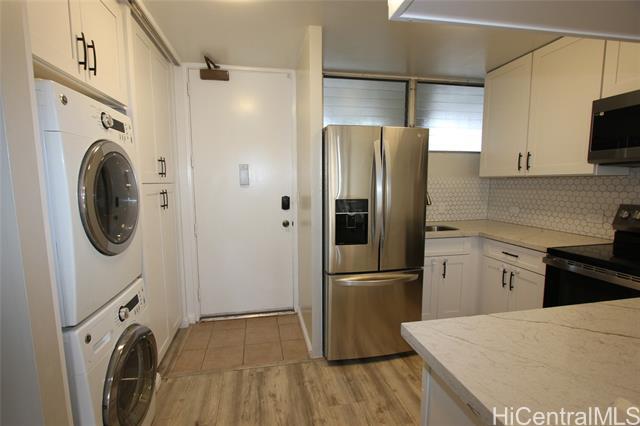 Rarely available split-level 1-bedroom, 1-bath unit in Ala Wai Plaza Skyrise with two parking stalls! Enjoy an open floor plan with the bedroom upstairs and in-unit washer/dryer for convenience. This well-maintained building offers excellent amenities including a saltwater pool, BBQ and picnic areas, 24-hour security, site manager, and ample guest parking. Prime location near Iolani School, UH Manoa, Kapiolani Hospital, Waikiki, Ala Moana Shopping Center, bus lines, and freeway access. Maintenance fee covering cable TV, hot water, sewer, and water.