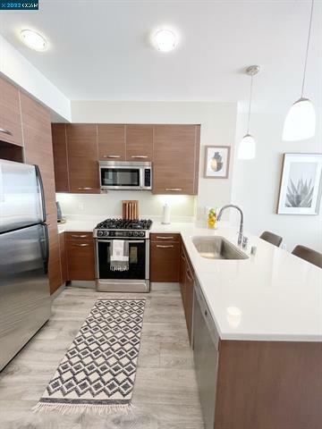Meticulously maintained 1 bedroom, 1 bathroom condo with views and ample size rooms. Enjoyable living near downtown Walnut Creek. Modern open Style with higher ceilings to enjoy natural lighting. Light &; bright with city views and private balcony to enjoy an evening sunset or outdoor dining. State of the art kitchen with SS Bosch appliances, European cabinets &; stone counters. Spacious bedroom with oversized walk-in closet. Washer and Dryer inside the unit. New hardwood flooring. Great location, close to Bart, freeway, shops and many excellent restaurants. HOA amenities enjoyed by residents include: Sky-Deck with BBQ and Fireplace, Formal Lobby, Media Room, Gym and Guest Parking. Move in/out requirements. Rent Includes garage parking/extra storage, water &; trash.