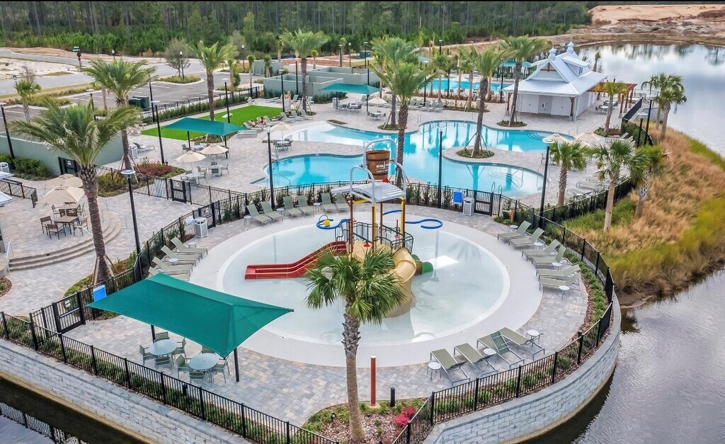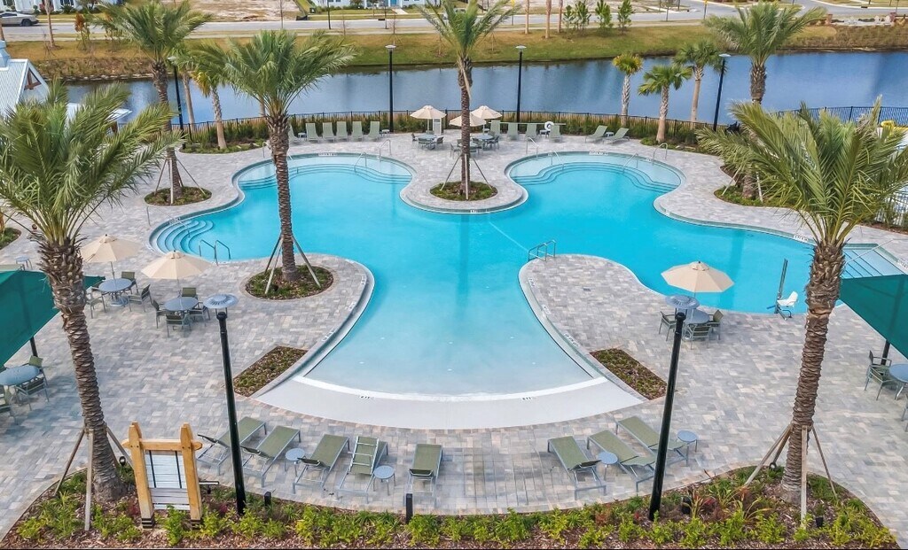 New construction home for rent in Seven Pines. This is a single level home with a 2 car garage and large screened in lanai. Next to the new amenity center which has a clubhouse, fitness center, resort style pool, lap pool, pickleball, children's playground, plus miles of lakefront trails and sidewalks.