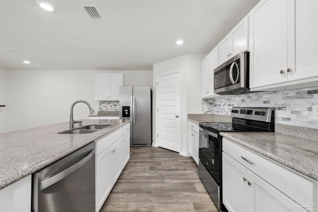Welcome to this beautiful 4-bedroom,2-bathroom home located in the desirable Cambria Subdivision,complete with sidewalks and street lighting that add both charm and convenience to the neighborhood. Designed with a functional and comfortable layout,this home offers plenty of space for everyone to spread out and enjoy. At the front of the home,you’ll find three well-sized guest bedrooms and a full guest bathroom,creating a separate and private area for family members or visitors. The heart of the home features an open-concept kitchen and living room,ideal for both everyday living and entertaining. The kitchen is equipped with granite countertops,a custom backsplash,stainless steel appliances,a large island for additional seating and prep space,and an oversized pantry for ample storage. Just off the living room,the covered back porch overlooks a privacy-fenced backyard,creating the perfect space for relaxing outdoors or hosting gatherings with friends and family. The spacious primary suite provides a comfortable retreat and is complemented by a well-appointed ensuite bathroom featuring a double vanity,walk-in closet,and a large 5-foot shower. This home also includes a washer and dryer for tenant use (not warranted),and pets may be considered upon owner approval. Conveniently located just minutes from shopping,dining,schools,Whiting Field,I-10,and more,this home offers both comfort and accessibility.