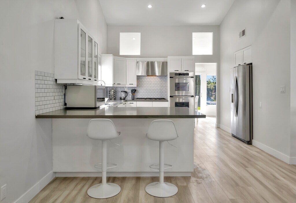 Experience breathtaking, panoramic views of the San Fernando Valley from this newly renovated, luxurious 4BR+Guesthouse abode nestled in the idyllic neighborhood of Woodland Hills. Conveniently located near major freeways, world-class shopping malls, and gourmet restaurants, this magnificent residence is just a short drive away from the pristine shores of Malibu Beach and the thrilling attractions of Universal Studios. This gorgeous house features 4 spacious bedrooms and 2 elegantly designed bathrooms in the main house, with a separate guesthouse providing additional living space for families or visitors. The open-concept living room includes a grand dining area, ideal for hosting elegant dinners. The kitchen is equipped with full appliances, a breakfast table, and ample storage, with a separate laundry room adding to the home's convenience. Additionally, the guesthouse offers 1 bedroom, 1 bathroom, a living room with a smart TV, and a full kitchen, bringing the total to 5 bedrooms and 3 bathrooms. Step outside to the serene backyard and indulge in the ultimate outdoor living experience. Relax in the hot tub or on outdoor furniture, or gather around the fire pit for a cozy evening under the stars while enjoying breathtaking panoramic views. Guest access Don't miss the opportunity to rent this magnificent property and make it your own personal slice of paradise vacation! This listing is for the whole house including the guesthouse. Totaling in 5BR+3Baths, Huge backyard, and more.