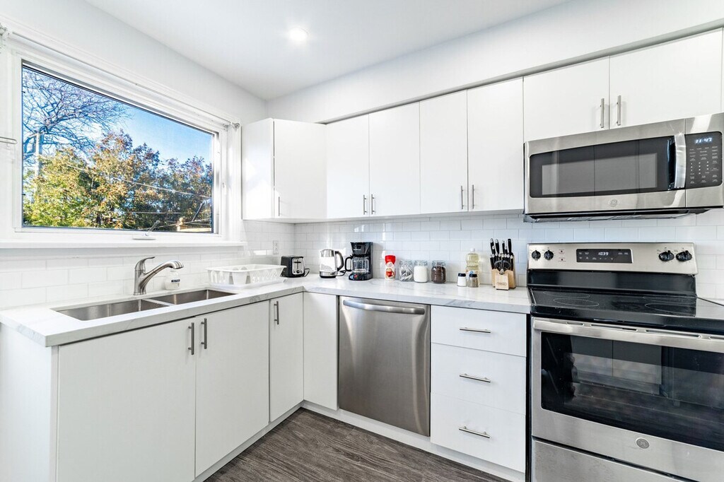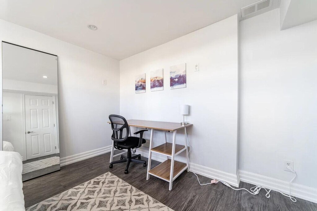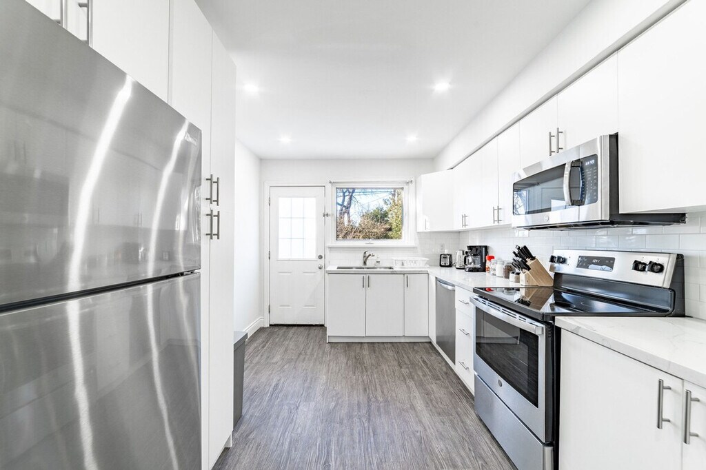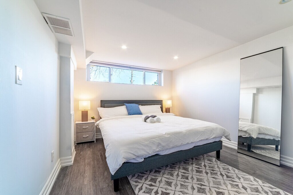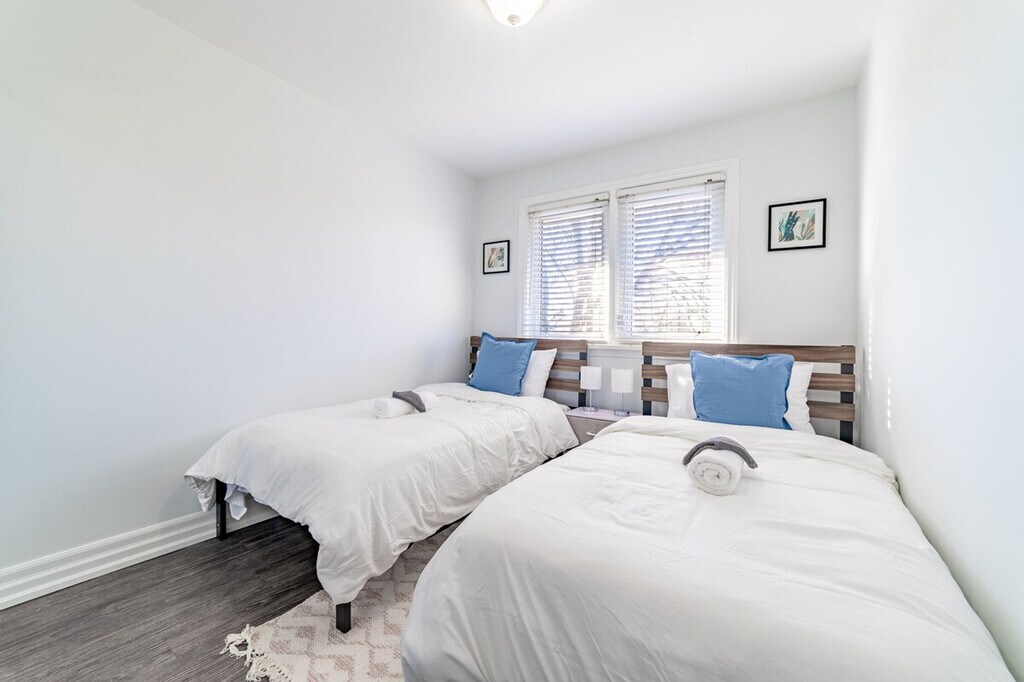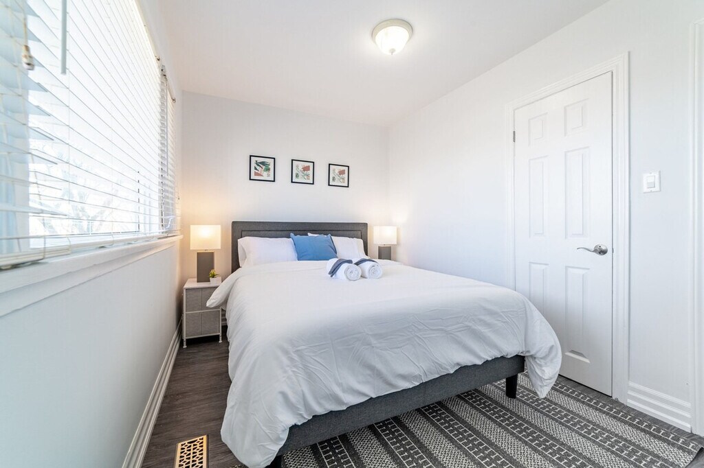 Feel at home in this spacious 4-bedroom home, conveniently located close to many amenities. This home features a fully equipped kitchen with kitchen appliances, including a microwave, oven, kettle, coffee maker, cooking and eating utensils, in-suite laundry and dryer, and ultra high-speed internet. For entertainment, there is a living room with a 55" smart TV. Basic items to get your stay started, including toilet paper, paper towel, soap, salt and pepper, sugar, tea, and coffee, are provided in limited quantities. One bath towel and washcloth per registered guest are provided. Five parking spots are available. The home is steps from a grocery store, beer store, and pharmacy, and a few minutes' drive from both sit-down and fast food restaurants. It is also a 5-minute drive from the QEW/Hwy 403, the Appleby GO station, and the beautiful Lake Ontario waterfront with great walking paths. The home is semi-detached, sharing a wall with neighbors, but the walls are sound-proofed. The home is entirely private, with its own entrance and private fenced-in backyard. The partner will be onsite for outdoor property maintenance, including snow clearing and general groundskeeping. No channels or streaming logins are provided for the TV; guests can log into their own streaming accounts. Includes two workstations with comfortable chairs. Self check-in is available using a smart lock. [SI]