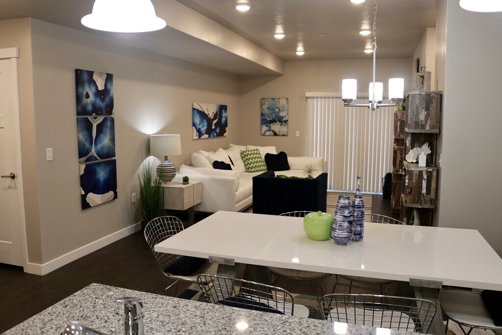 RENT $1480.00/ $750 DEPOSIT This beautiful collection of modern style living apartment homes feature everything from a fully-equipped kitchen/bathrooms with designer finishes, and modern wood custom cabinets as well granite counter tops, stainless steel appliances, distinctive wood style flooring through out the common areas and plush thick carpets in bed rooms. Modern fitness club Features, fully equipped kitchen, fitness center with cardio, Pool and hot tub. Media package includes 150 Direct T.V. & High speed internet, pet friendly. Conveniently located along four freeway exits and Frontrunner station. You couldn't live in a more centrally located condo just minutes from the UVU, BYU and 15 minute drive to silicon slopes ( Micron, Adobe, Vivant, etc. ) More natural and beautiful amenities cannot be found elsewhere. Provo Canyon, where hiking, fishing, biking tubing and skiing are all available to you in the right season. 2 Bedroom 2 Bath condo on 2nd floor