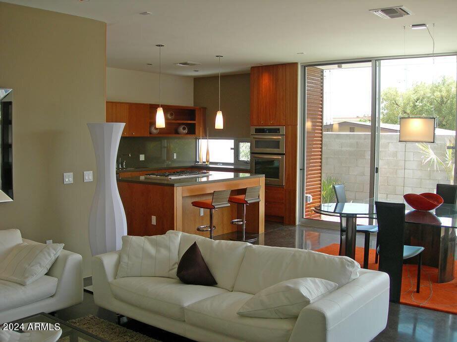 Christensen's Court is this name of this luxury enclave in North Central Phoenix,but those in the know call it 'GEORGE' in homage to beloved Phoenix architect,George Christensen who once called this site home. This former builder's model features superb details and upgrades including 9'+ ceilings,walls of floor to ceiling glass,finished concrete floors,designer carpet,9' cherry veneer solid core interior doors,gourmet kitchen with euro-style cherry cabinets,upscale appliances and luxurious designer baths. Free-standing home with no common walls offers 2,371 sq ft,3 bedrooms plus a den,2 and 1/2 baths,attached 2 car garage plus a large private patio and yard with mature landscaping. Please see the floor plan under documents tab. Photos by Bill Timmerman. Centrally located within North Central Phoenix near the upscale Biltmore Area and the happening Camelback Corridor. Great shopping nearby and a plethora of happening restaurants and bars within a two mile radius. Both a Whole Foods and a Trader Joe's are at Town & Country Shopping Center are just 1.8 miles away and Pizzeria Bianco,Hana Japanese Eatery,Dick's Hideaway,Richardson's,Rokerij,The Whining Pig Uptown,Barrio Cafe,Parlor,The Gladly,Sushi Michi,Fuego Bistro,Otro Cafe,The Yard w/ Culinary Dropout,Stock & Stable,Honor Amongst Thieves,The Womack,Bluewater Grill,Phoenix City Grille,Niccoli's Italian Grocery-Deli plus many more restaurants and bars are all within 2 miles as the crow flies. Available now for a one year or longer unfurnished lease.