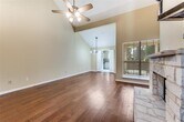 Beautifully maintained home in the gated Springstead Condo community, ready for move-in! Vaulted ceilings and wood-burning fireplace create a warm and inviting living space. Natural light throughout this two bedroom, two full bath home with upstairs loft area that makes a great at-home office or guest room! Updated kitchen, bathrooms, and flooring, with a laundry closet includes washer-dryer. The private fenced backyard is a great bonus for outdoor living or pets. Enjoy use of the community swimming pool, as well as the tennis courts. The unit has two assigned parking spots numbered 130, one is covered and one uncovered. This peaceful community is conveniently located to shopping, restaurants and entertainment, and is close to Tollway and LBJ. Pets must be approved.