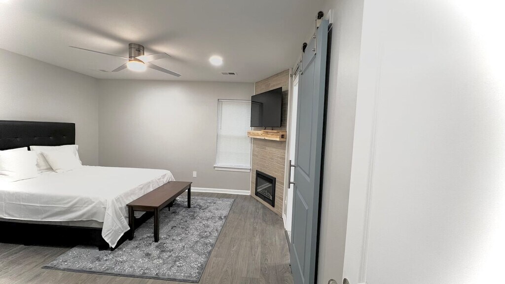 Residential Home Available for Lease This brand-new, open-concept bungalow offers the perfect blend of comfort, style, and convenience. Featuring a striking fireplace, an oversized backyard with a new deck ideal for outdoor entertaining, and a 5-car parking lot, this home is designed for a well-balanced lifestyle. Conveniently located just minutes from Downtown Atlanta, Mercedes Benz Stadium, and the Atlanta Airport. The property is available furnished or unfurnished, with the furnished option featuring modern finishes throughout. Key Features: - Spacious Master Bedroom: Includes luxury ensuite bathroom, and a fireplace with a mounted TV option. - Bathrooms: All new tiles and modern showers and tub design. - Kitchen: Brand-new with granite countertops and stainless steel appliances including a range/stove, refrigerator, dishwasher, and a stacked washer/dryer. - Outdoor : A deck and expansive backyard, perfect for hosting or relaxing. - Ample Parking: Accommodates up to 4 vehicles. Contact us today to schedule a tour and make this stunning property your new home! Quiet neighborhood, 5 minutes to Atlanta Airport, Great Schools.