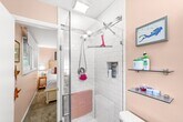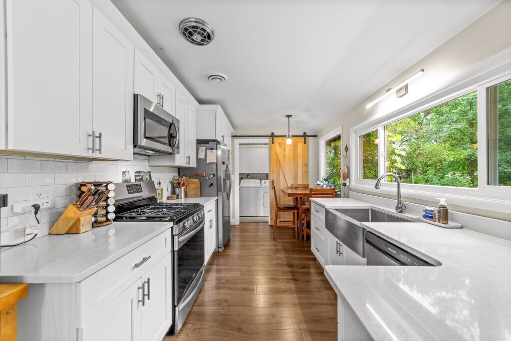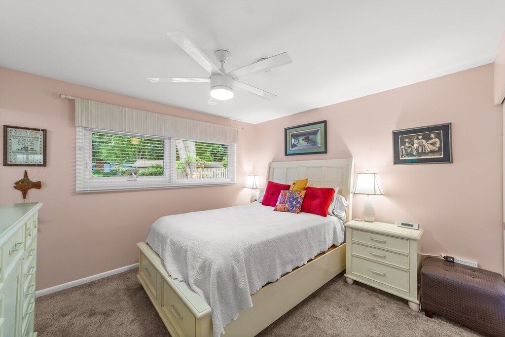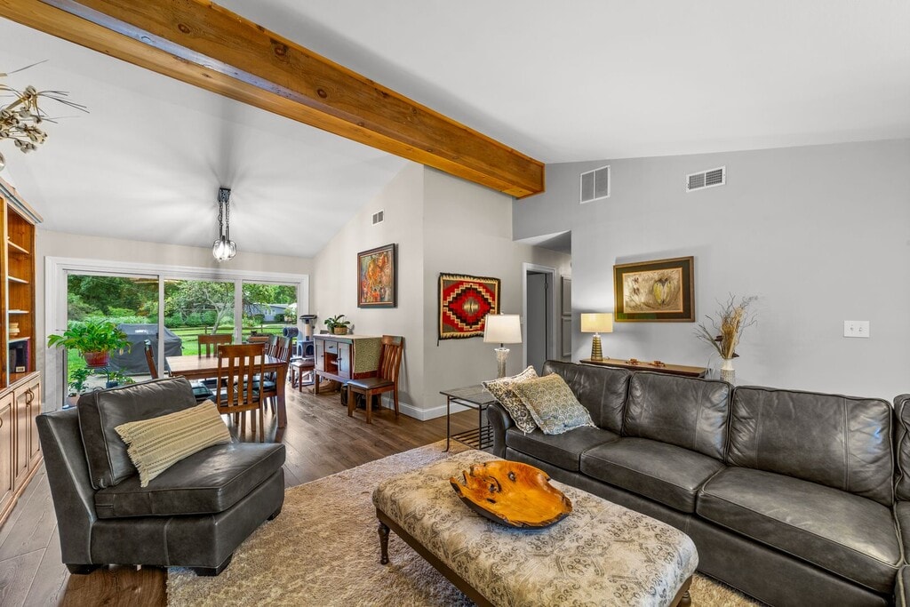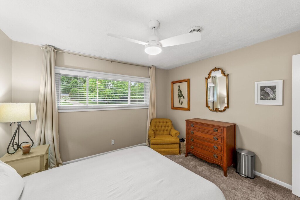 Welcome to 557 Edinborough Drive, a beautiful 4-bedroom home located in the heart of Bay Village and just minutes from the shores of Lake Erie. This property offers the ease of first-floor living with a spacious open floor plan, highlighted by soaring ceilings and a striking wood beam in the living room. Enjoy energy savings with recently installed Pella Windows and a smart thermostat system. The kitchen was renovated in 2019 with quartz countertops and stainless appliances. The dining room sits between the kitchen and living room, with sliding doors leading directly to the backyard patio for seamless entertainment. The master suite includes a private en suite bath, while additional bedrooms provide plenty of space for family or guests, all with recently updated neutral carpeting. The updated wooden blinds remain with the house for your convenience and privacy. An attached 2-car garage offers both convenience and additional storage. Outside, a concrete patio extends the living area and provides an ideal spot for relaxing or hosting gatherings. Nestled in a quiet neighborhood yet close to parks, schools, shopping, and all that Bay Village has to offer, this home combines comfort, convenience, and charm in one of the area’s most desirable communities.