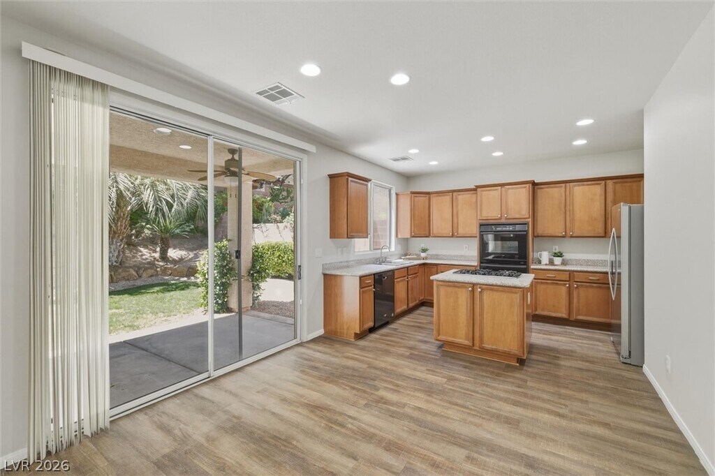 A Fabulous home located in the gated Solano community of Summerlin West. This 2 story residence features fresh interior paint and solid-surface flooring throughout the downstairs. A charming from porch welcomes you into the home, while the full covered patio offers the perfect shady retreat overlooking the lushly landscaped backyard. The kitchen is designed for both function and style, featuring a center island, granite countertops, double ovens, stainless steel appliances, a pantry, and an open layout to the family room with a cozy fireplace, creating the perfect open-concept living space. Upstairs, the spacious primary suite offers a separate tub and shower, dual sinks and a walk-in closet. The separate laundry room is conveniently located upstairs as well. MLS ID 2774658