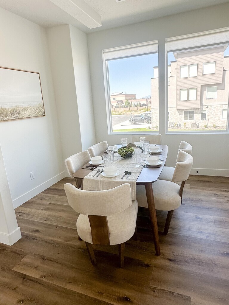 Brand new luxury townhomes. Top of the line finishes, bright and open floor plan, windows, 2 rooftop decks, quiet, beautiful mountain views. $0 Monthly Package: Fiber Internet & Direct TV included in rent $0 Monthly Per Car | Max 3 Cars Per Apartment $50 Additional Fee per Unit Washer and Dryer if you chose Water | Sewer | Trash - To Property $65 a month Included Snow Removal | Maintenance of amenities (parks, basketball/pickleball) App fee $50 Per Person Security deposit $700 (With approved credit) $250 is Non-Refundable Management Administrative fee Pet Deposit $500 Non- Refundable Per Pet $75 Per Pet | Max of 2 Pets Unit amenities Air conditioner, Cable, Dishwasher, Disposal, Double sink vanity, Garage parking, Hardwood floors, Kitchen island, Laundry hookup, Microwave, Mirrors, Pet friendly, Refrigerator, Stove and oven, View, Walk-in closets, Window coverings quiet townhome community with pickleball, basketball, grass areas, and playgrounds.
