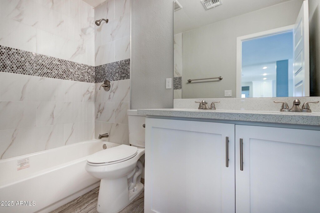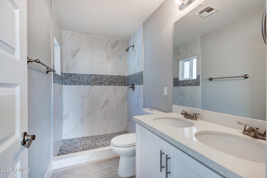 Beautifully updated Chandler home near Downtown Chandler with 3 bedrooms (2 masters),Fully Permitted Addition,and 3 UPGRADED bathrooms,NO HOA,large lot,custom kitchen has gorgeous quartz counters with NEW upgraded cabinets,NEW stainless steel appliances including gas range,dishwasher and microwave drawer! This open family room with eat in kitchen has an area for dining table,open kitchen/family room,custom tile showers with new vanities w/dual sinks,new toilets and quartz countertops! Bedrooms have upgraded carpet and pad,home has new tile floors,new blinds,and new windows! Home has a large rear yard,New electric service,north/south exposure,and a great location! Convenient eateries and shopping nearby