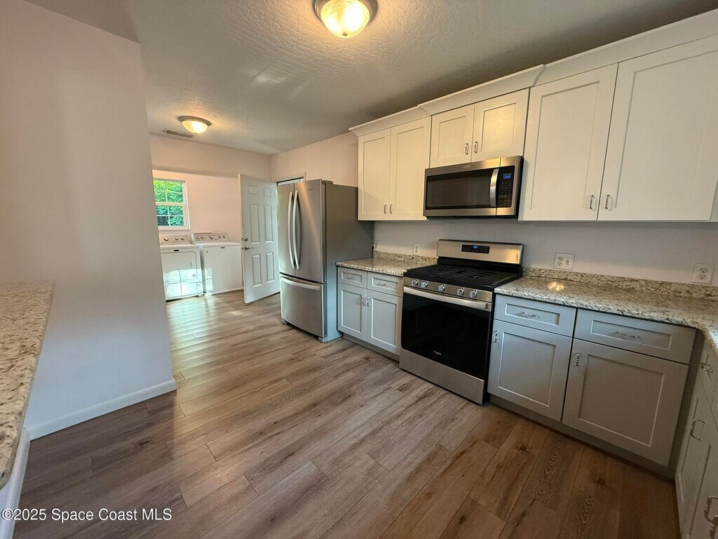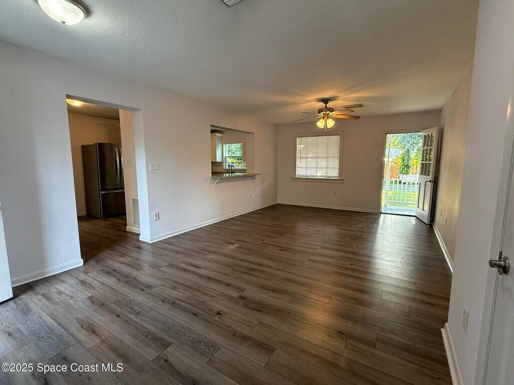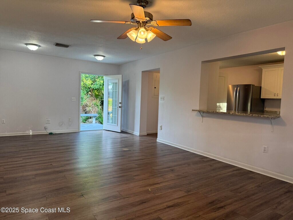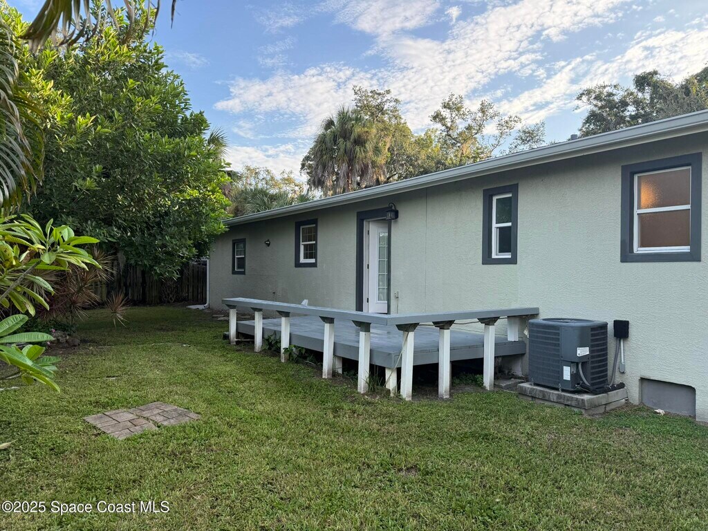 Recently renovated and ready for new tenants! This charming 3-bedroom,2-bath home with a 2-car garage sits on a quiet dead-end street in the desirable Eau Gallie Arts District (EGAD). Inside,you'll find an open and inviting layout with modern finishes,updated flooring,and fresh paint throughout. The kitchen features newer cabinetry,granite countertops,and plenty of natural light. Both bathrooms have been tastefully updated. The fully fenced backyard offers a large deckperfect for relaxing or entertainingand plenty of green space to enjoy. Conveniently located near shopping,dining,and the causeway for easy beach access. One small pet (under 30 lbs) permitted. Available immediatelydon't miss this one!