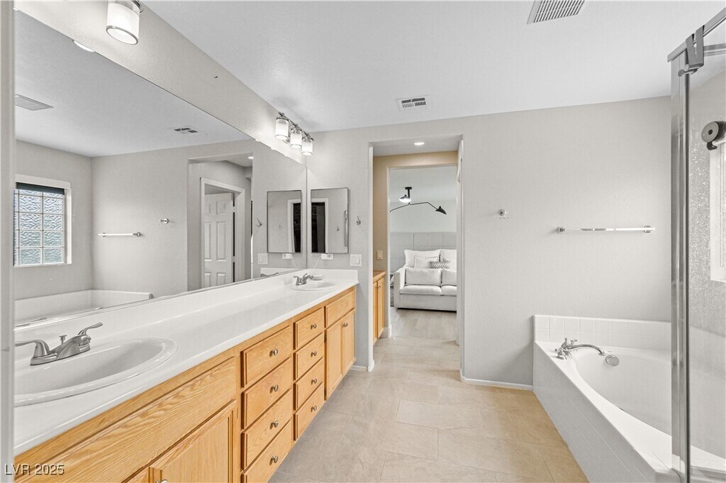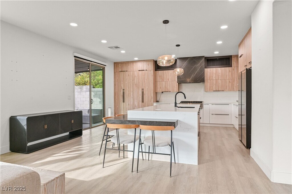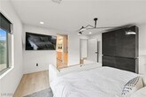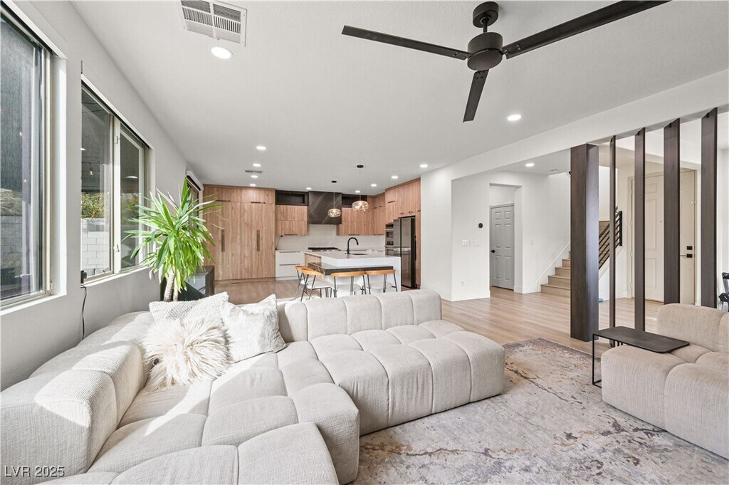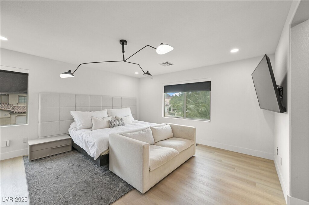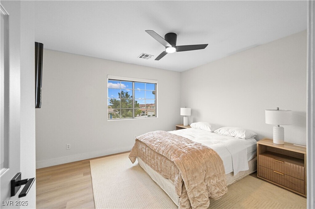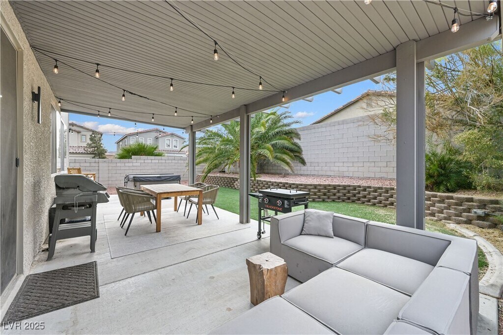 Beautifully updated 3 bedroom, 2.5 Bath Home with a Detached Casita. Located in Summerlin South! Walking distance to Bishop Gorman & minutes from Downtown Summerlin. **Home includes Solar Panels included in rent, covering most power costs.**This Home features Custom Professionally Designed upgrades/remodeling throughout. Modern designer kitchen, remodeled powder room & custom modern living room media wall with electric fireplace, LVP flooring throughout, newer appliances, solar shades & ceiling fans in all rooms. 3-car tandem garage w/ overhead racks & full wall cabinetry. Outdoor features: gated modern courtyard, 4-person hot tub, bistro lights, synthetic lawn & mountain views. **As an extra added perk, Solar, Trash, Sewer & Tenant Portal Fee are included in rent! Don't miss out on this Rare custom Home! Schedule a showing.