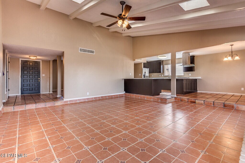 Located in the desirable Upper Valley area of West El Paso,this charming home offers 3 bedrooms,2 bathrooms,a utility room,and a 2-car garage. The spacious open living area features cathedral ceilings and a cozy fireplace,creating a warm and inviting atmosphere. The kitchen includes a full stainless steel appliance package,an island,and plenty of space for everyday living and entertaining. Double patio doors open to the backyard,where you'll find a sparkling pool perfect for enjoying the outdoors.