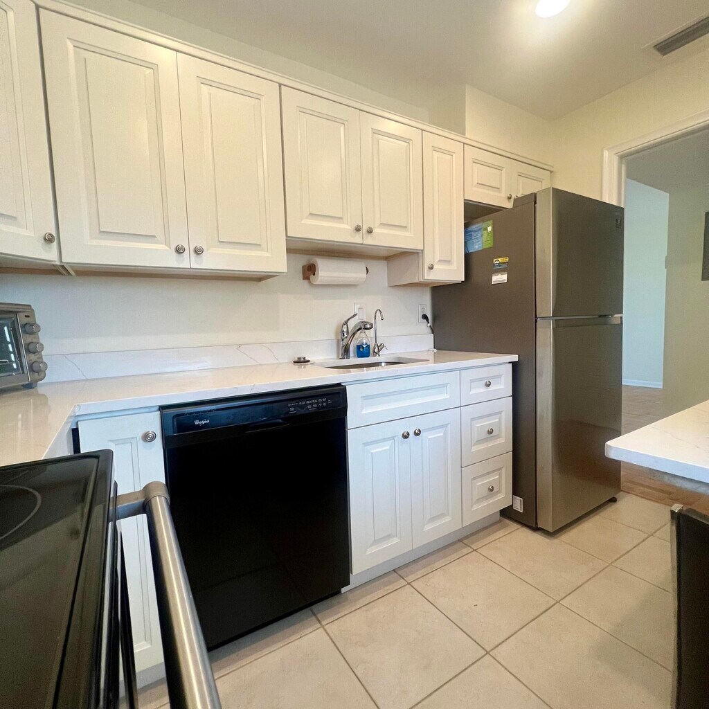Spacious and light-filled 2-bedroom, 2-bath condo in the heart of Palm Beach Gardens! Located in a desirable 55+ community, this unit features a split-bedroom floor plan for added privacy, brand new vinyl plank flooring in both bedrooms, and impact-resistant slider doors and bedroom window for hurricane protection. The renovated kitchen and updated bathrooms complement the neutral color palette throughout. Enjoy an open-concept living and dining area filled with natural light, ample closet space, and the convenience of covered assigned parking. Centrally located with easy access to I-95 and the Turnpike, and just minutes from premier shopping, dining, and entertainment, PBI Airport, beautiful beaches, and top-rated hospitals.