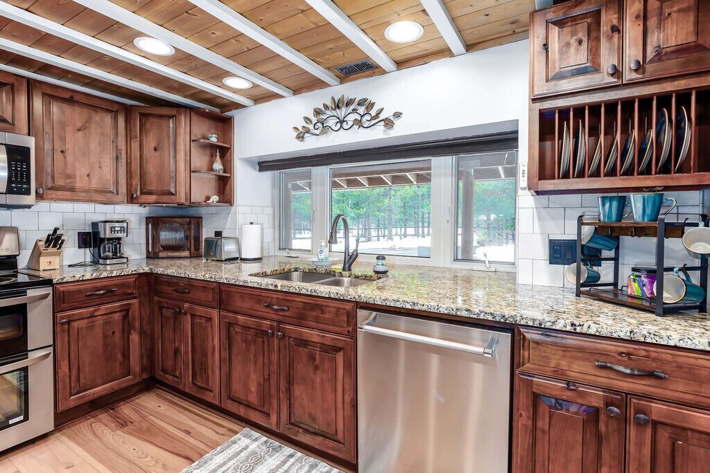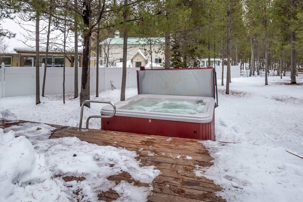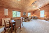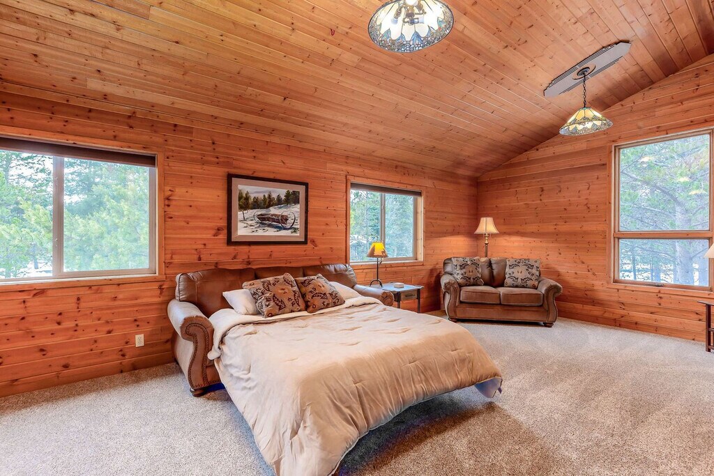 Feel at home in Wood Carvers Cabin, a beautifully remodeled log cabin nestled just south of Sunriver in a peaceful, tree-filled neighborhood. This home features 3-bedrooms, a large loft, and 2 full baths. Set on a fully fenced, naturally landscaped half-acre lot with a wraparound driveway, this inviting home is ideal for families, friends, and pups ready to explore all that Central Oregon has to offer. This cabin features a spacious primary suite upstairs with a king-size bed, en-suite bath, walk-in closet, soaking tub, and shower. There are two guest bedrooms downstairs, each with cozy bedding and a shared full bath. The large upstairs loft includes a sleeper sofa, game table, and comfy seating. Enjoy the open-concept living room, kitchen, and dining area for easy entertaining. The well-equipped kitchen provides easy access to the side deck and BBQ grill. Board games and puzzles are provided for cozy evenings in. A smart TV and Wi-Fi are available throughout. Up to 3 well-behaved dogs are welcome with a fee of $40 per pet, per stay, excluding service dogs. Located just minutes from Sunriver Village shops, dining, and outdoor fun, this cabin is a short stroll to the Deschutes River and community boat ramp. Mt. Bachelor is just a 35-minute drive away. Enjoy easy day trips to Cascade Lakes, Bend, or Crater Lake. Golf, fish, bike, or simply soak up 300 days of Central Oregon sunshine. Nearby attractions include Lava Butte, Benham Falls, High Desert Museum, LaPine State Park, Old Mill District, Downtown Bend, Mt. Bachelor, Riley Ranch Preserve, Paulina Lake, Sparks Lake, Davis Lake, Sisters, Smith Rock, and Crater Lake National Park. If a noise complaint is called in by a neighbor after 10 pm, the Deschutes County Sherriff will be notified, and you could be evicted from the property without a refund. Evidence of smoking will result in charges to pay for sanitizing, deodorizing, and cleaning the affected areas. Guest is responsible for any and all injuries and/or damages to person or property caused by any pet brought in, at, or around the property. Guest must clean and properly dispose of all pet excretions immediately upon discovery. [SI]