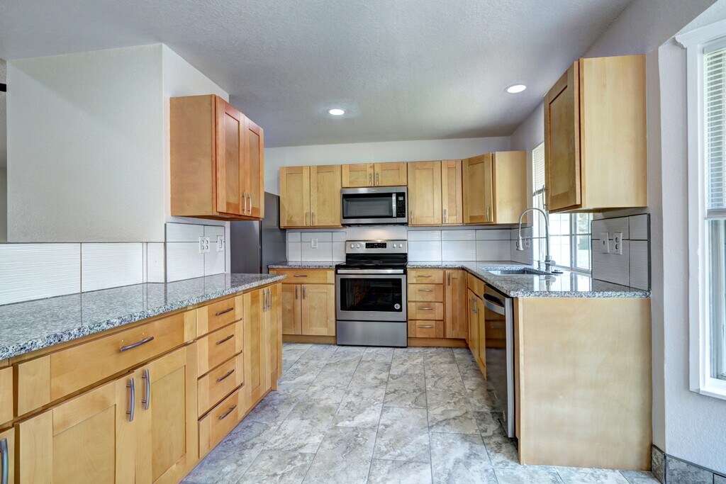 This updated 3 bed, 2 bath home sits on nearly 1/3 of an acre and backs up to Pioneer Park, allowing for plenty of outdoor space for recreation and privacy. New flooring, kitchen, and paint are just a few of the updates to the interior. The home also includes a fully fenced back yard, storage shed, and attached 2 car garage. Schedule your showing today! Pet friendly with associated pet fee.
