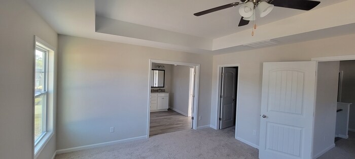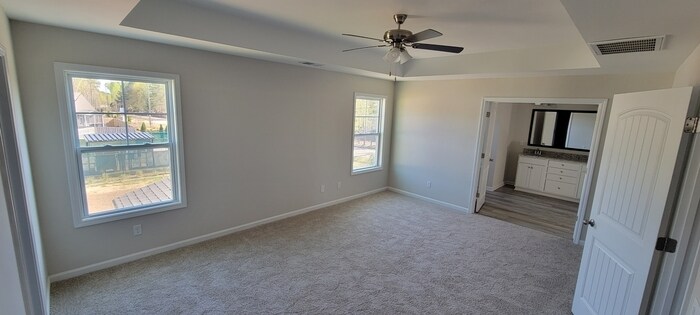 Lease with Option to Buy! Ask us for details on purchase price etc.. This like-new, one-owner home offers 5 bedrooms and 3 full baths with the perfect blend of comfort, style, and functionality. On the main level, you'll find a bright, open floor plan featuring a formal dining room, a spacious kitchen with designer staggered cabinets, granite countertops, stainless Energy Star appliances, and a living room centered around a cozy fireplace. A guest bedroom with a full bath is also located downstairs—ideal for visitors or a home office. Upstairs, the expansive loft provides a versatile second living area. The luxurious owner's suite boasts dual walk-in closets and a spa-like bath with granite-topped vanity, soaking tub, and separate shower. Three additional bedrooms share a full bath, and the conveniently placed laundry room makes everyday living easy. Extra features include an extended driveway perfect for multiple vehicles, Great Southern Homes' GreenSmart energy-saving features (R50 attic insulation, Low-E windows, tankless gas water heater, programmable thermostat, and Honeywell home automation system), and thoughtful exterior details such as a covered front porch entry, carriage-style garage door, and landscaped yard with irrigation. Located on cul-de-sac with no neighbors on right side and no neighbor directly behind either.. Contact us to schedule a showing.
