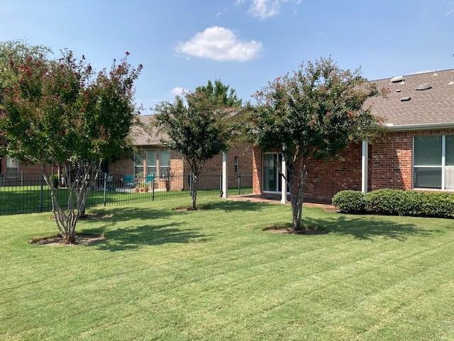 Azalea floor plan, a favorite among homeowners! Set on a quiet cul-de-sac with a generous lot, 0.1796 acre (7825 ft.²). Picturesque curb appeal with beautiful landscaping and down-home beauty welcomes you in. French doors lead into the nice study, overlooking the beautifully manicured front yard. Backyard fenced for privacy to enjoy your breakfast cup of coffee while relaxing on the 22’ x 8’ patio, finished with porcelain tile. Flowering crepe myrtle trees offer a pretty view from your patio, perfect for entertaining! Kitchen has stainless appliances with brand-new microwave and gas range. Breakfast bar opens to roomy living & dining areas. Four thoughtfully placed ceiling fans will keep you comfortable throughout your home. Spacious walk-in closet off master bedroom. Large laundry room with utility sink & storage cabinets. Oversized two-car garage (26’ x 20’), with space for an extra fridge or storage Fresh interior paint all around, including garage. Four newly updated smoke alarms. This extraordinary home was purposely designed and meticulously maintained. Landlord pays HOA and lawn care. Frisco Lakes is an age restricted community. It is a senior's dream with all the amenities, including a fitness center, interior walking track, three outdoor pools + one indoor pool that includes a spa. The golf club offers an excellent course for the sports enthusiast, as well as a fine restaurant where you can relax and enjoy a delicious meal. There are even bocce ball , pickle ball and tennis courts for you to join in the fun with your new community family! Please stop by and take a look at this lovely home with everything Frisco Lakes has to offer!