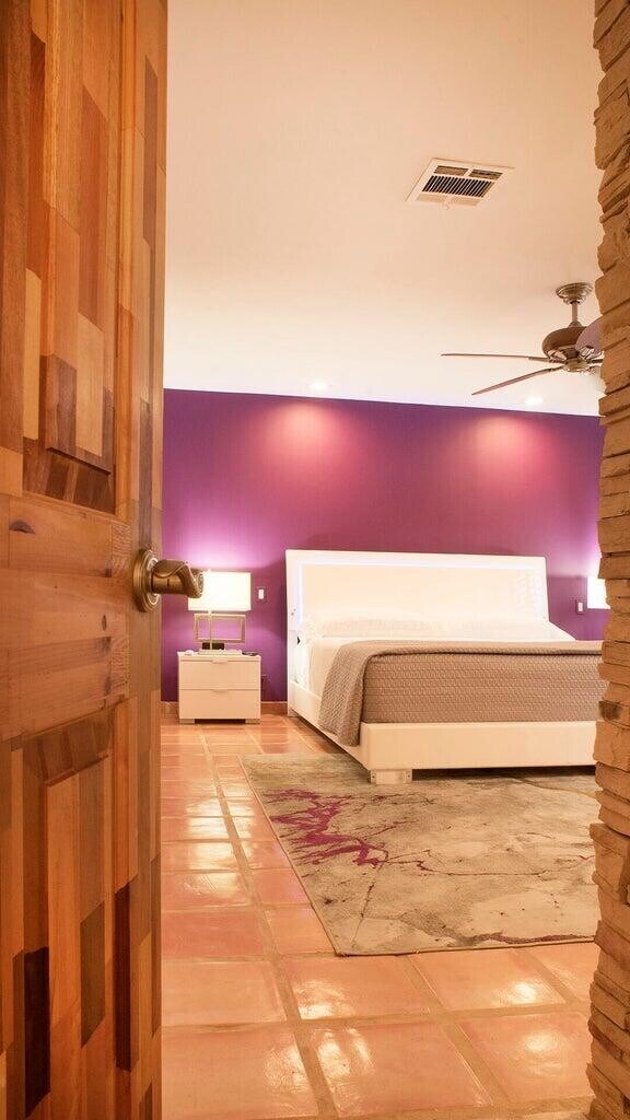 TOTALLY FURNISHED. Stunning 2,400 sq. ft. Mid Century Modern home in So. Palm Springs. Available Long or Short term starting January 2026. This gem in the desert exudes Peace,Privacy and Seclusion. The entire property has been mindfully and beautifully renovated and enhanced. A private electric gate entrance provides parking for up to four cars and includes EV charging. The home boasts a state-of-the-art kitchen with imported cabinetry from Milan/Italy,quartz countertops,and top-of-the-line appliances including a premium stove,microwave,refrigerator,wine cooler,washer,and dryer. The home has three (3) large Flat Screen TVs,a separate Media room that seats 6 people comfortably,and a huge living room with fireplace. Two (2) large bedrooms - one King and one Queen,and a third bedroom or office that overlooks a private garden. This energy-efficient home is equipped with three (3) separate AC/HVAC systems to control use and cost. Step outside to enjoy relaxation and dining with a gas grill,heated pool and spa (all new equipment),fire pit,and covered patio - all with breathtaking views of Mt. San Jacinto perfect for year-round entertaining and star gazing. Located just three blocks from Demuth Park Community Center offering a gym,12 pickleball courts,baseball diamonds,soccer fields,basketball courts,and tennis courts. The park also features rolling hills with walking and bike paths,green open space,and a public golf course. Plus,the home is within walking distance to a grammar,middle,and (fabulous) high school. Water,trash,gardening,and pool service (2 times a week) are covered by the landlord. This ZENSATIONAL property embraces mother nature in all her beauty and exudes SERENITY inside and out. Call today for more information and a private showing. Pet negotiable.