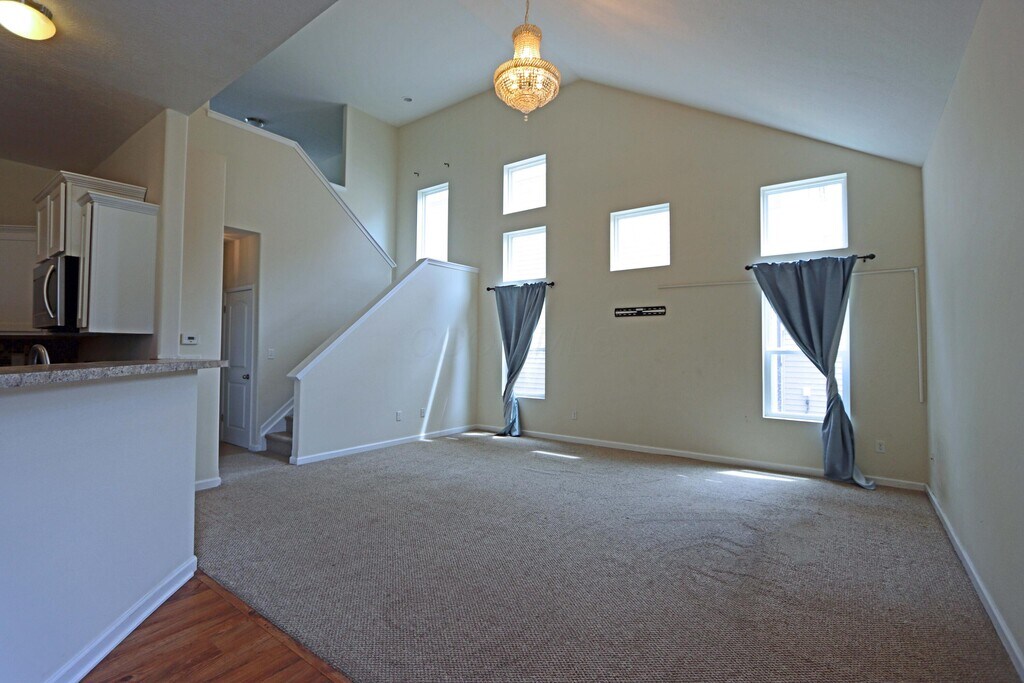 Wonderfully spacious 2-story home in the popular Haydens Crossing neighborhood,with covered front Porch,stone accented exterior & 2 car Garage. Enter through the Foyer,with decorative lighting & arched doorway. The open floor plan features an expansive Great Room open to the upper level Loft,with sunny windows that fill the space with natural light. The Dining area is accented by a sparkling,decorator hanging light,plus a sliding glass door to the Patio & outdoor greenspace. An adjacent door provides access to the 20x20 2-car Garage at the back of the house,with alley access & driveway. The well designed Kitchen features white cabinets,laminate counters & breakfast bar,tile backsplash,stainless steel sink,& stainless steel appliances including a French door refrigerator,dishwasher,microwave & gas range. The main level also offers a convenient Laundry Room with Samsung washer & dryer,Half Bath,guest closet & deep walk-in storage closet. The outstanding 1st floor Primary Suite features a ceiling fan/light & double windows,walk-in closet with organizers,and an ensuite Bath with white vanity & glass door shower. At the top of the staircase is a large,multi-purpose Loft area which overlooks the Great Room. Perfect space for a home office,media room,kids playroom,etc. The second Bedroom has two windows & a double door closet with organizers. The Hall Bath includes a vanity with sink & tub/shower with tile surround. Bedroom 3 has a closet with organizers & double windows. Enjoy the large Patio with surrounding greenspace & privacy panels,great for outdoor relaxing,grilling and more. This attractive community includes a clubhouse with fitness center,kid's playset,volleyball court,firepit with benches & sparkling outdoor pool for residents. Great location,close to Tuttle Mall,a Giant Eagle grocery store,other shopping,restaurants,Dublin Hospital & I-270. All neutral decor,ready for you to move in & enjoy. Welcome Home!