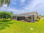 Beautiful,meticulously maintained,TOTALLY FURNISHED/TURNKEY home in a gated exclusive,friendly community. This 3 bedroom,2 bathroom Villa features a large eat-in kitchen and large living room leading to a finished glassed in Lanai space providing a view of the lake through a new "panoramic designed" screened lanai cage. All appliances have been replaced within last eight years. Garage features a power screen. Lanai has an electric hurricane shutter. Hurricane panels are provided to protect all window openings. Exterior painting and new roofs,2019,were all part of the HOA. This home is a must see for your next seasonal vacation stay. Unpack your bags and enjoy your morning cup of coffee watching the sunrise on the water this 2026 season! Available Dec 2025 & April 2026 @ $4000/mo