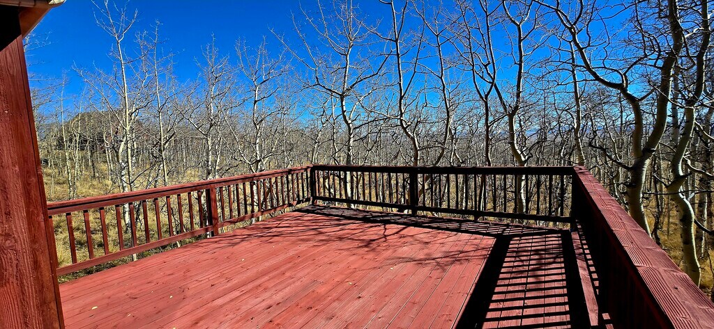 2-bedroom, 2-bath home on a private 1-acre lot with mature aspen trees. The property features a wrapping deck, freshly painted interior and exterior, and brand-new carpet throughout. Detached two-car garage for parking and storage. The home has natural gas heat and a gas stove on the lower level. Starlink internet service is included. Tenant pays for electric and gas utilities.