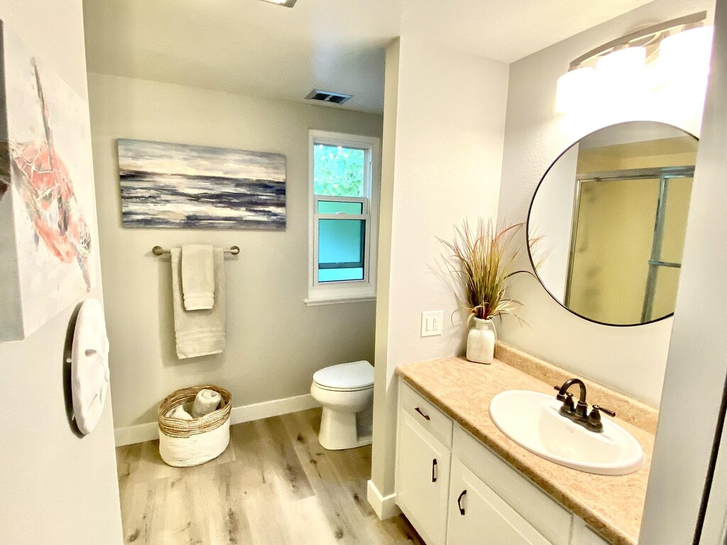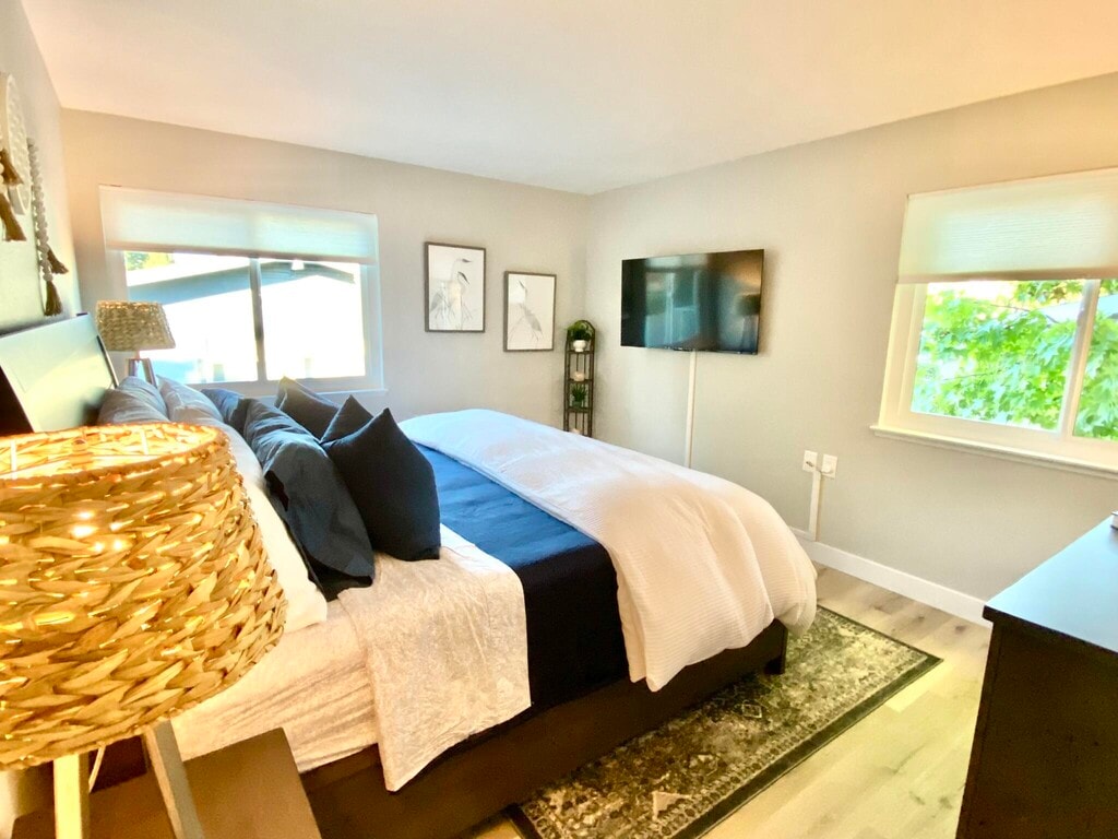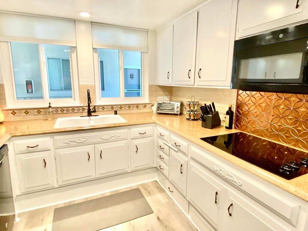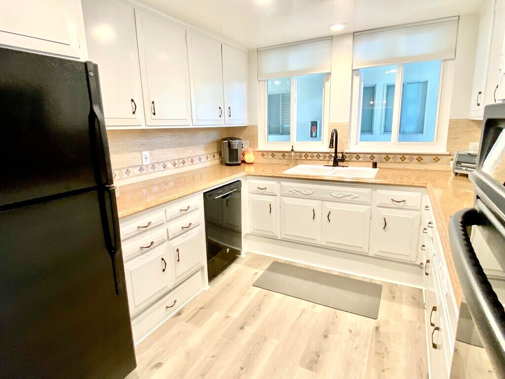 This beautiful Casa Blanca unit was recently updated and being leased turnkey boasting great natural light,with 2 Bedrooms and 2 baths and nestled between tree-filled courtyards in a quiet area. Views of greenbelt passageways,garden greenery and flowers surround. This home recently had new windows,new blinds,new flooring,new paint,baseboard,door molding,hardware,lighting,TV's,kitchen plates,dishes utensils not to mention mostly new furniture and sofa with 3 recliners built in and decor accessories. Laguna Woods Village residents enjoy a private 27-hole golf course plus an executive 9-hole par 3 golf course,5 swimming pools,7 clubhouses,over 250 social organizations,equestrian center,3 fitness centers,a theater and more. THIS IS A 55+ COMMUNITY. Enjoy luxury living at an affordable cost. Conveniently located near beaches,shopping,medical facilities,freeways,Irvine Spectrum,eight miles to Laguna Beach and a 20 min drive to OC Airport. Lease term is for 4-6 month available starting Mid December or January 1st. For each applicant,submit a C.A.R Application to Rent,ID,Credit Report w/FICO Score,Criminal Background Check Report and proof of income for landlord's approval (Rentspree provides the reports for $50/applicant) at . Tenant to pay $170 lease transfer fee to GRF. NO SMOKING. LWV has smoking regulations. Owner is a licensed CA Real Estate agent.