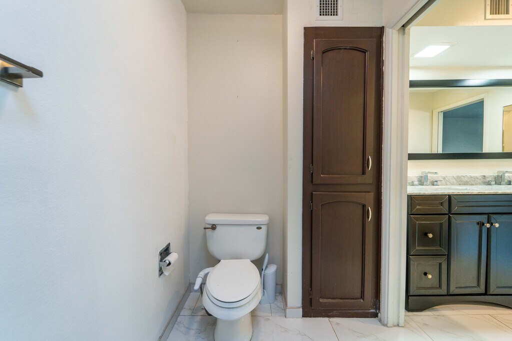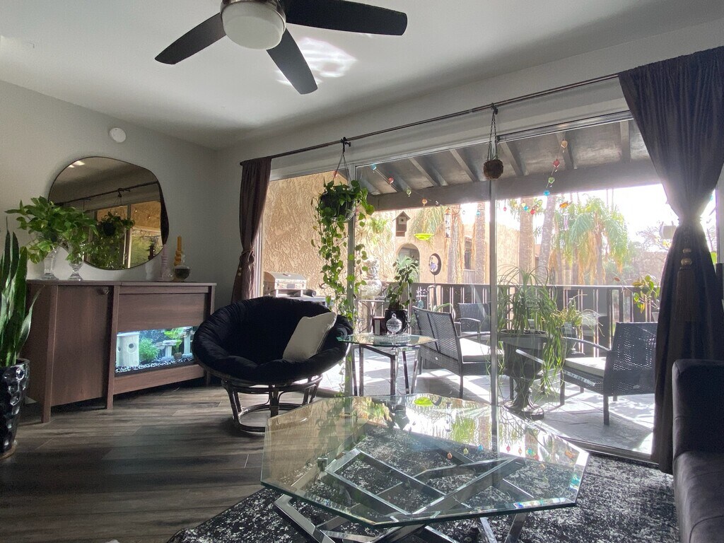 Modern, upgraded 2-bedroom, 2-bath condo with sparkling pool views in one of Tucson's most desirable central locations, just minutes from the University of Arizona, downtown, El Con Mall, Reid Park Zoo, and top dining and shopping. This second-floor unit features vaulted ceilings, large windows, & waterproof luxury vinyl plank flooring throughout the main living spaces. A cozy wood-burning brick fireplace anchors the light-filled living room. The chef's kitchen includes quartz countertops, white shaker cabinets, a sleek black glass backsplash, stainless steel appliances including a dual convection slide-in range, a deep under-mount sink, pull-out faucet, & reverse osmosis system. Both bathrooms are beautifully updated with Carrara marble vanities & tiled showers. Home is for lease as well The primary suite offers balcony access and a spacious walk-in closet. Additional upgrades include remote-controlled LED ceiling fans, crystal light fixtures, updated interior doors, USB charging outlets, a stylish security screen door, and matching window guards. A dedicated covered parking space, private exterior storage room with shelving, and a newer Trane 3.5-ton heat pump and A/C unit. Call to schedule a viewing.