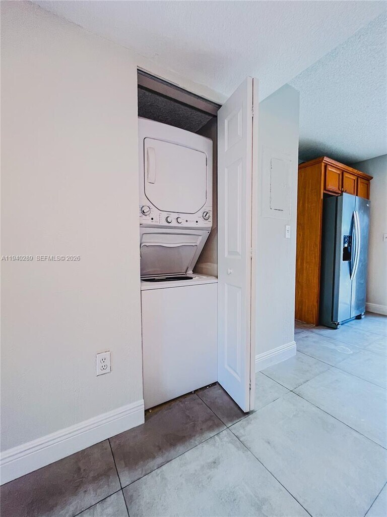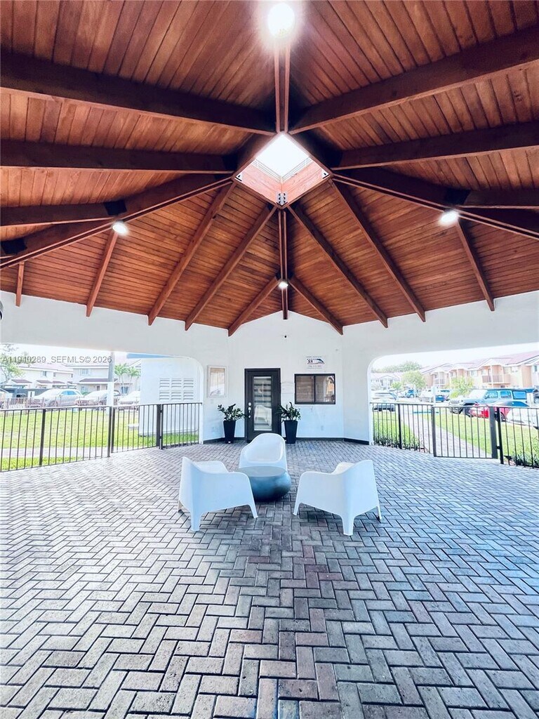Charming townhouse-style 1/1.5 in gated Mira Villas with a large private fenced patio great for indoor/outdoor lifestyle, is thoughtfully updated and well-maintained. Not typical boxed apartment living, its interior features range from beautiful large tile & vinyl flooring, a spacious bedroom upstairs with generous closet spaces, an updated, stylish half bathroom, a washer/dryer, and newly installed blinds/shades. The big functional kitchen benefits from ample natural light, a pantry, practicality & wood cabinetry. Others: Assigned parking directly in front. Located just minutes from Costco, Publix, the new Macy’s, Doral, major roadways, SR-836, and MIA. Well-suited for tenants seeking security, privacy, and convenience with easy access to lots of what Miami has to offer. 1st, last, and security. Renters insurance. Assoc approval 2 weeks. MLS # A11940289